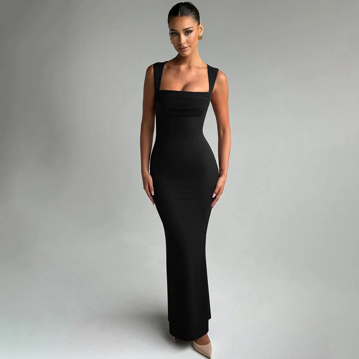 Ladies Party Dress Square Neck Sleeveless Dress Bodycon Summer Dresses 2025