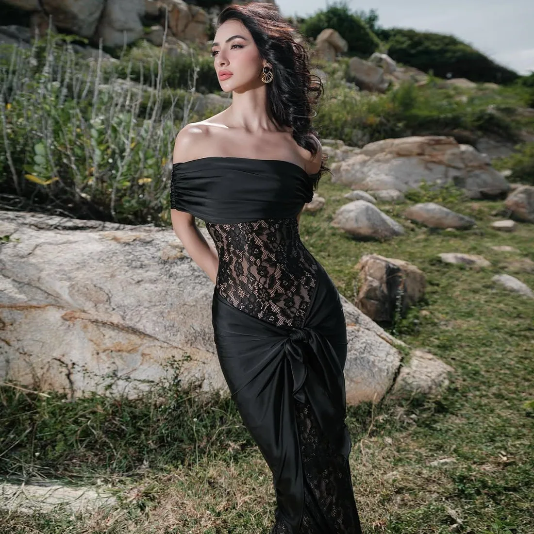 Sexy Dress Maxi Lace See Through Bodycon Dress Black Summer New Long Dress Ladies