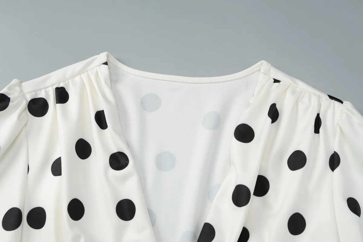 Fashionable Polka Dot Print Dress Sexy Deep V Neck Flared Sleeve Bodycon Dress Women