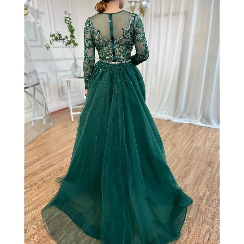 ZYHT 73902 Dark Green Blue Long Sleeve Simple Elegant Evening Dress Customize High End Women Clothing Manufacturer