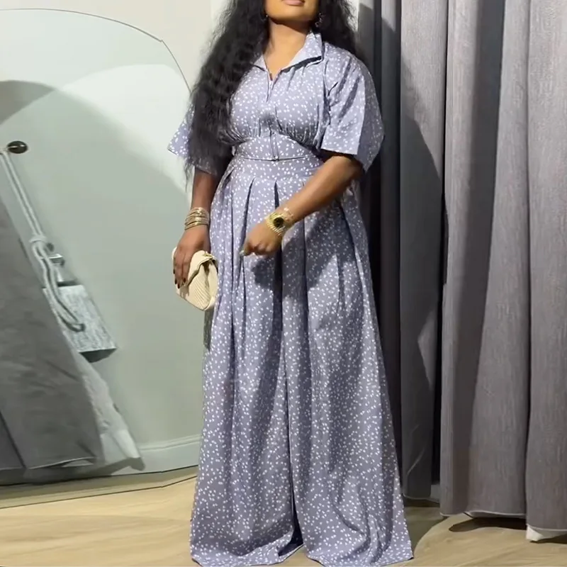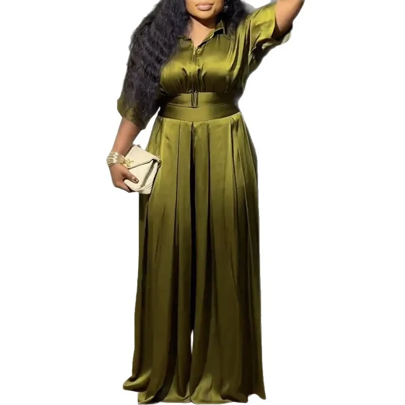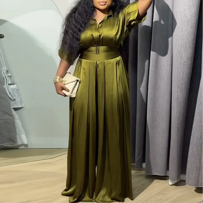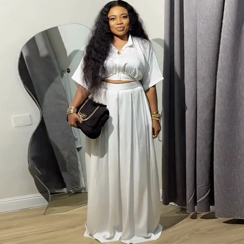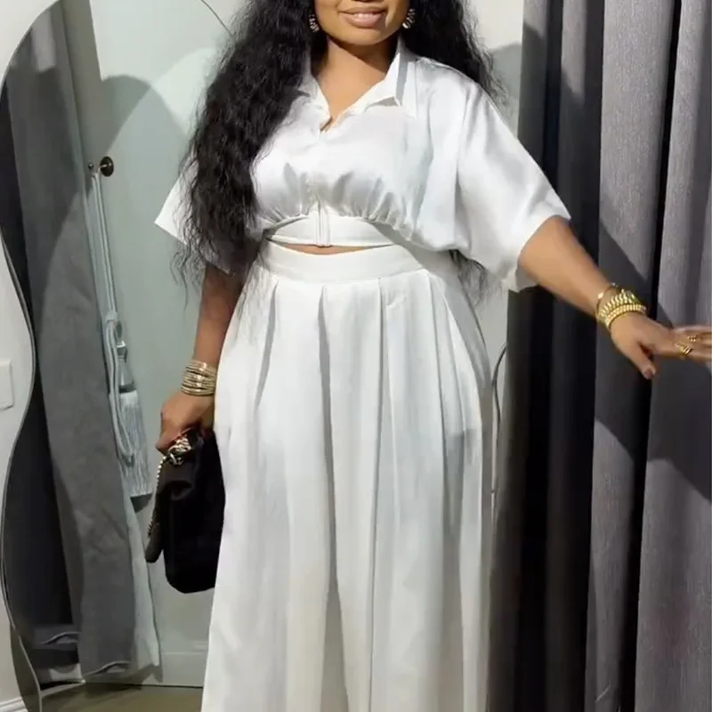 Europe United States Cross-border African Women's 2026 Spring New Fashion Solid Loose Lapel Short Shirt Top Wide Leg Pants Suit