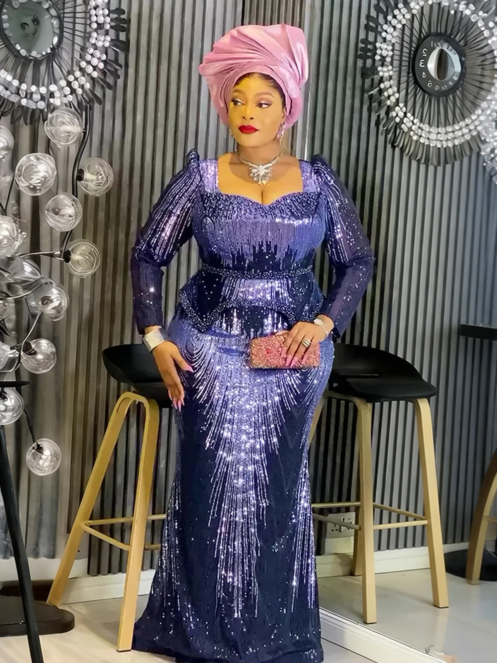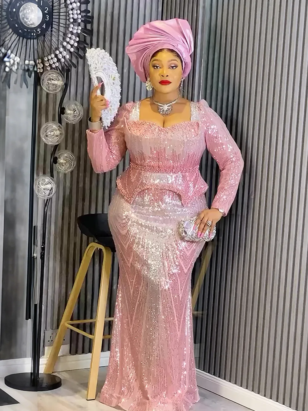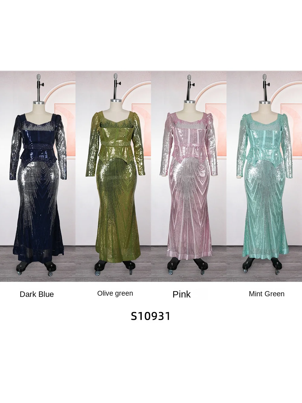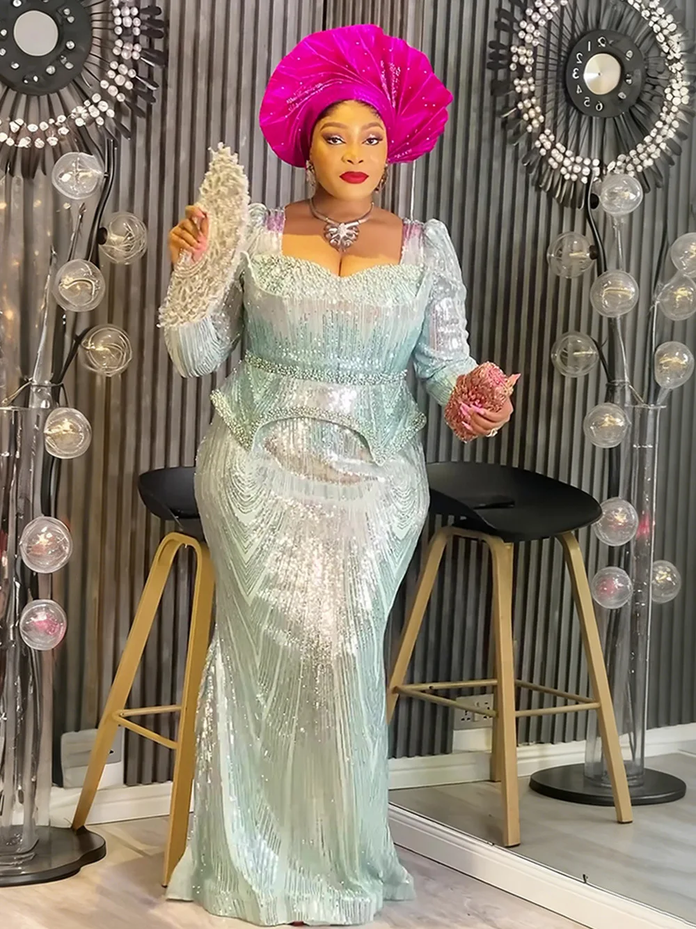 Africa Cross-border Trade AliExpress Sequined Floor-Length Women's Cashmere Mermaid Fishtail Skirt Party Evening Dress Bead