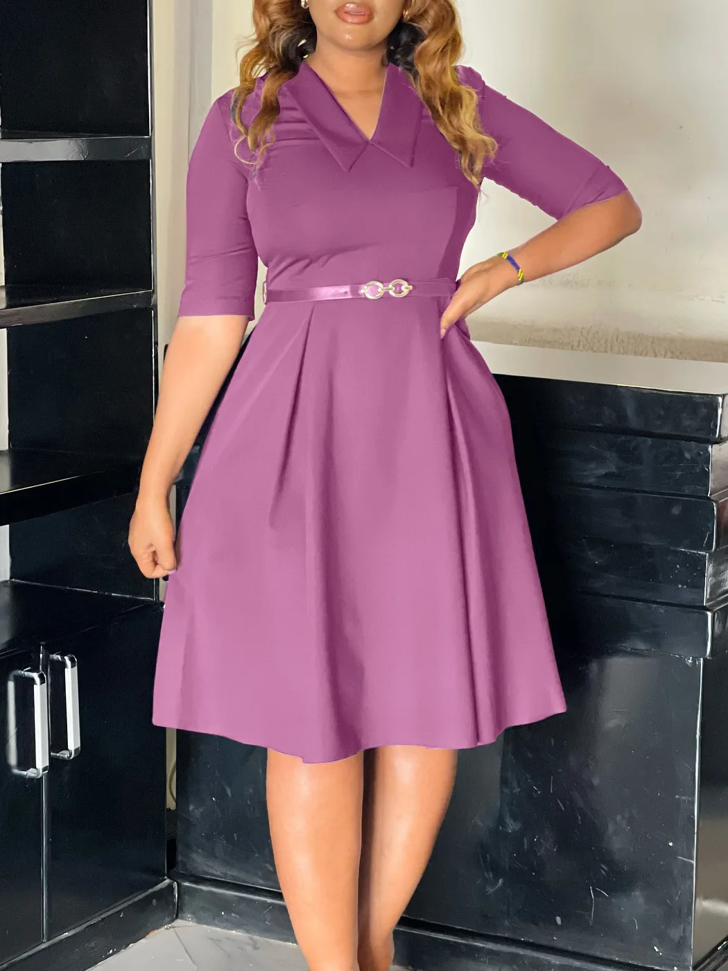 C8637 Large Size Women's Autumn Fashion Elegant Solid Color Lapel African Dress