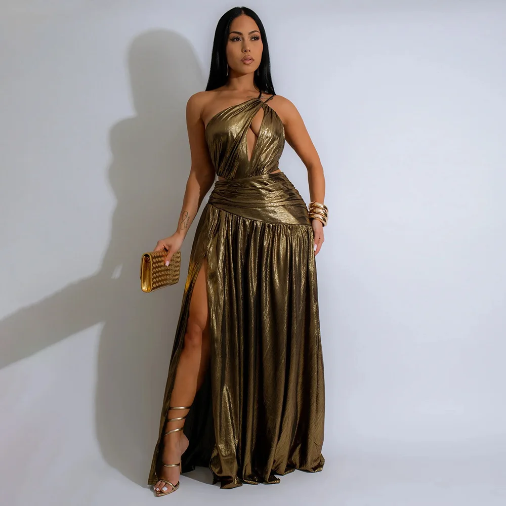CY901469 Diamond Cashmere European American Style Slant Shoulder Hollow High Split Pencil Silhouette Sexy Sleeveless