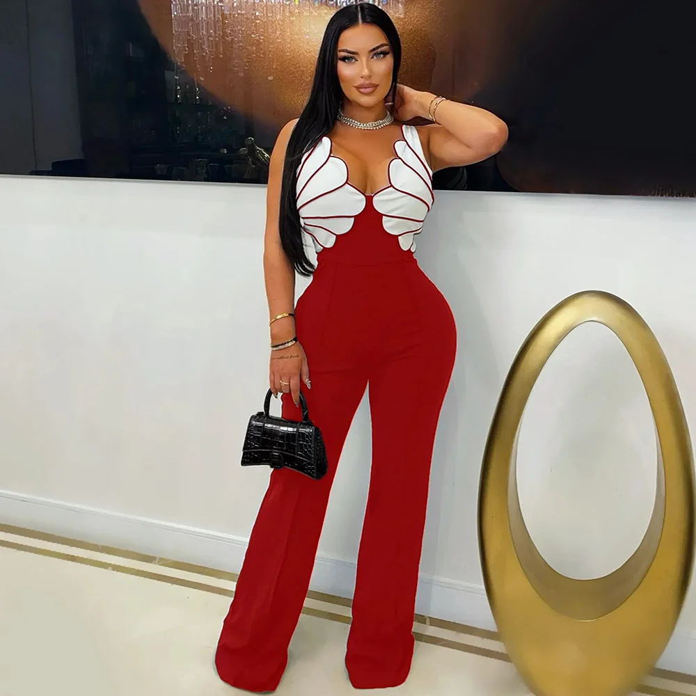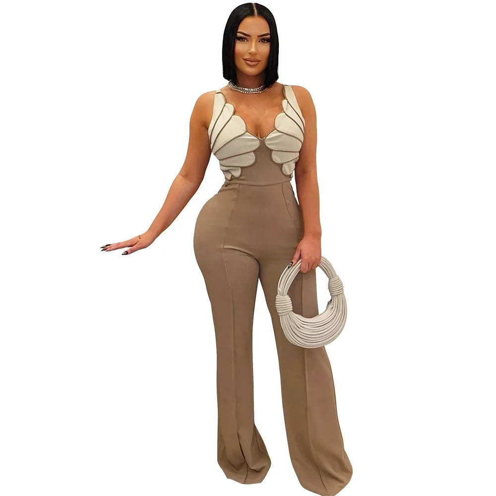 CY901595 European American for Foreign Trade V-Neck Sleeveless Slim-Fit Jumpsuit Fashion Women's Casual Rhinestone Bikini