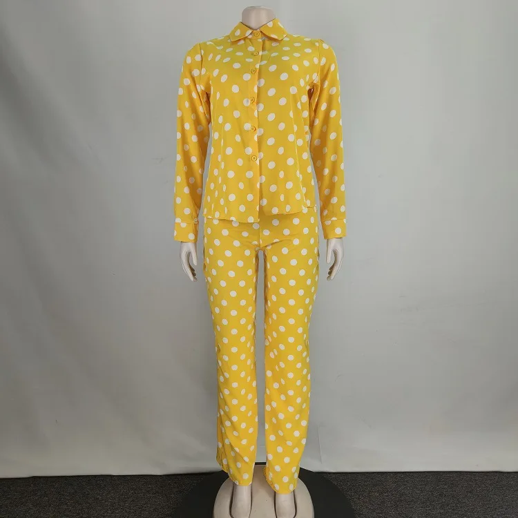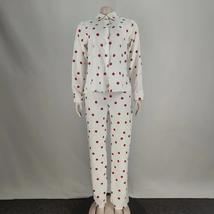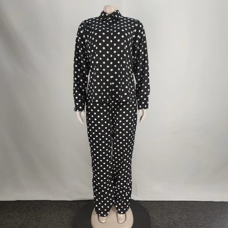 Casual Polka Dot Printed Women Set Two Piece Pants Set Women Clothing 2022 Hot Selling Long Sleeve Women Two Piece Pants Set