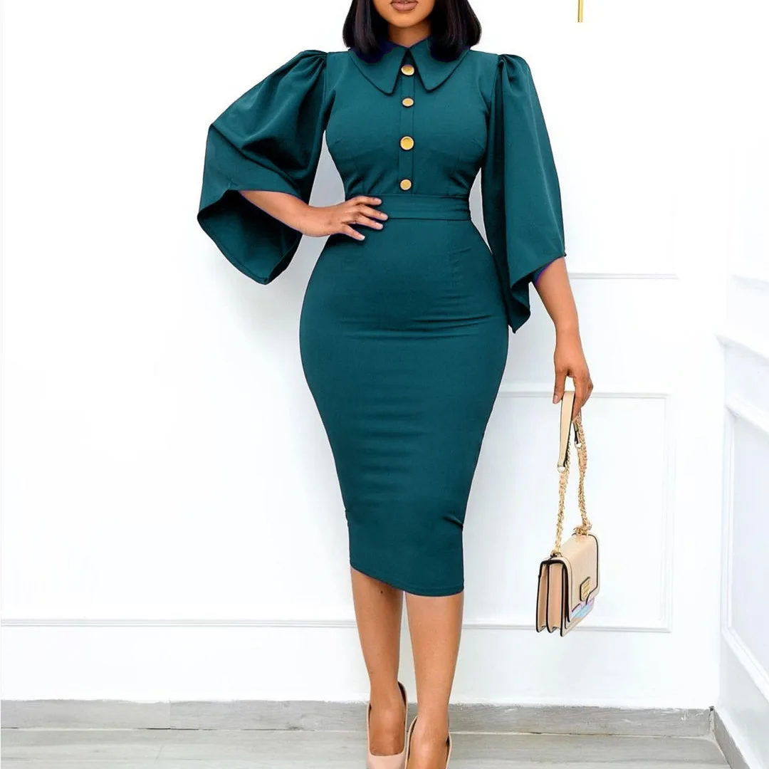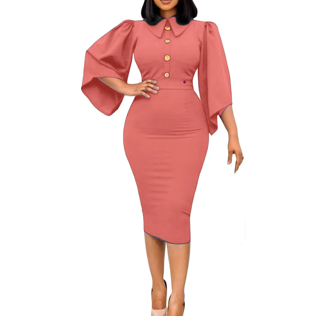 2022 African Women Solid Color Hip Wrap Tight Large European and American Fashion Dress