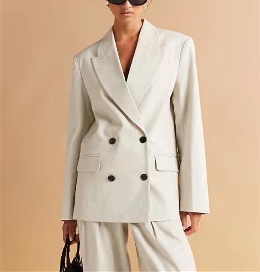 OEM Wholesale Customized Hot Selling Oversized Double Breasted Blazer Fashion Casual Women's Blazer Long Sleeve