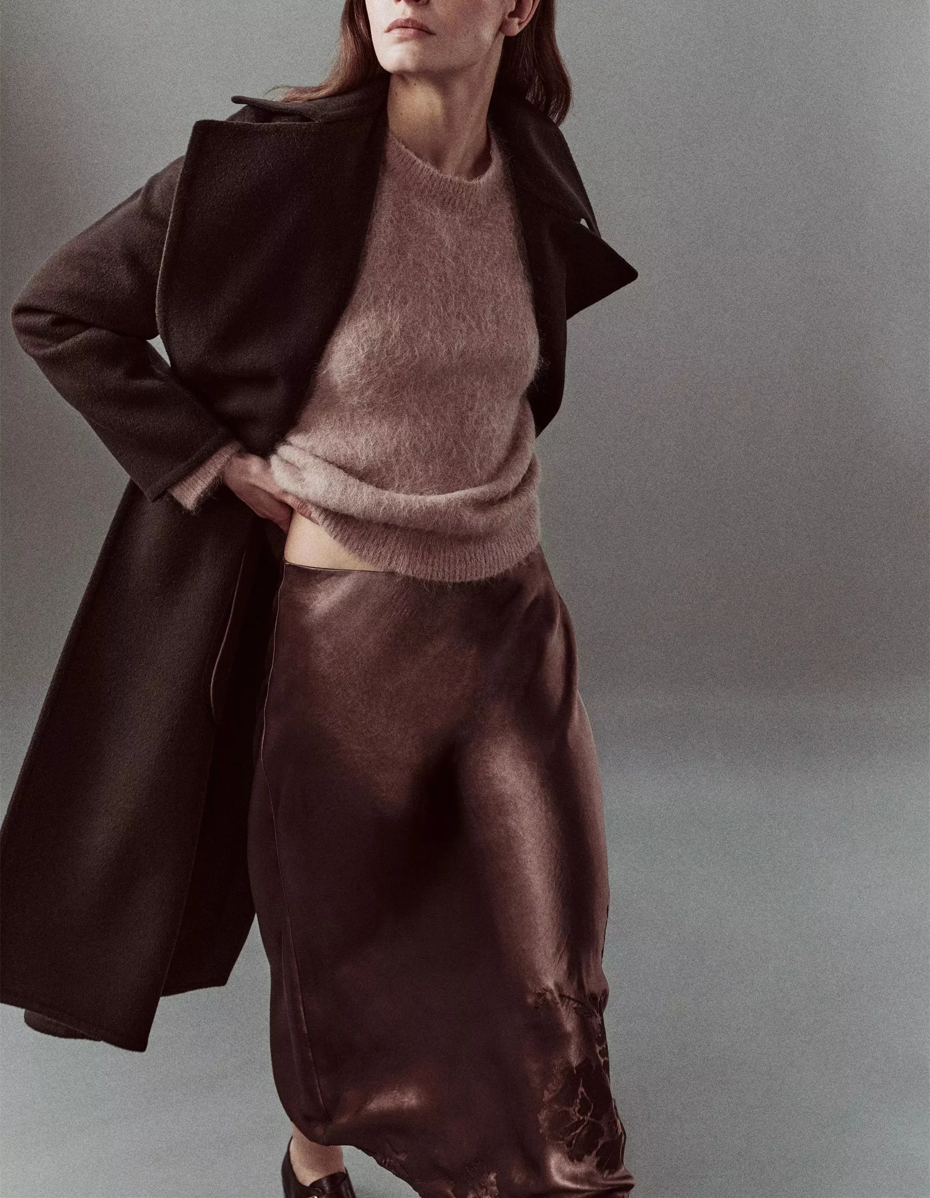 ZYHT 73905 Dusty Rose Off-The-Shoulder Long Sleeve Stretch Jersey Dress Ruched Bodice Floor Length Fish Tail Maxi Dress