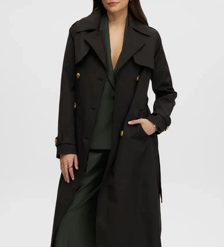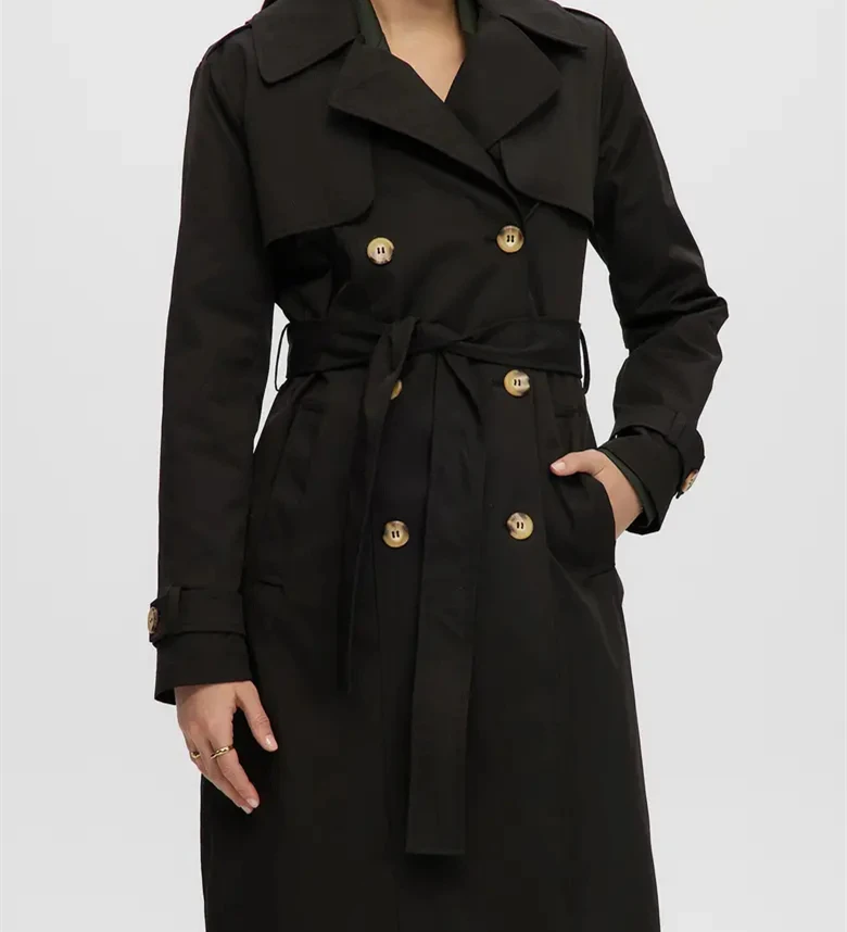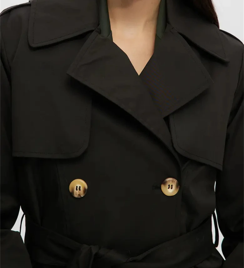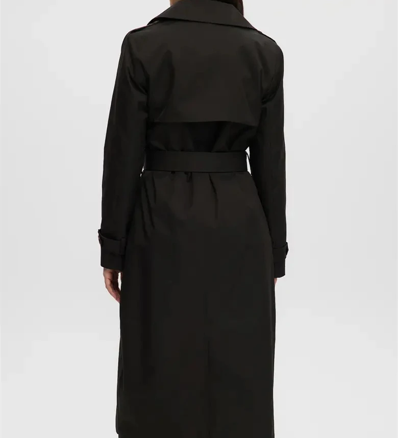 Wholesale Customized High Quality 100% Polyester Windproof Fashionable Classic Casual Elegant Double-Breasted Ladies Trench Coat