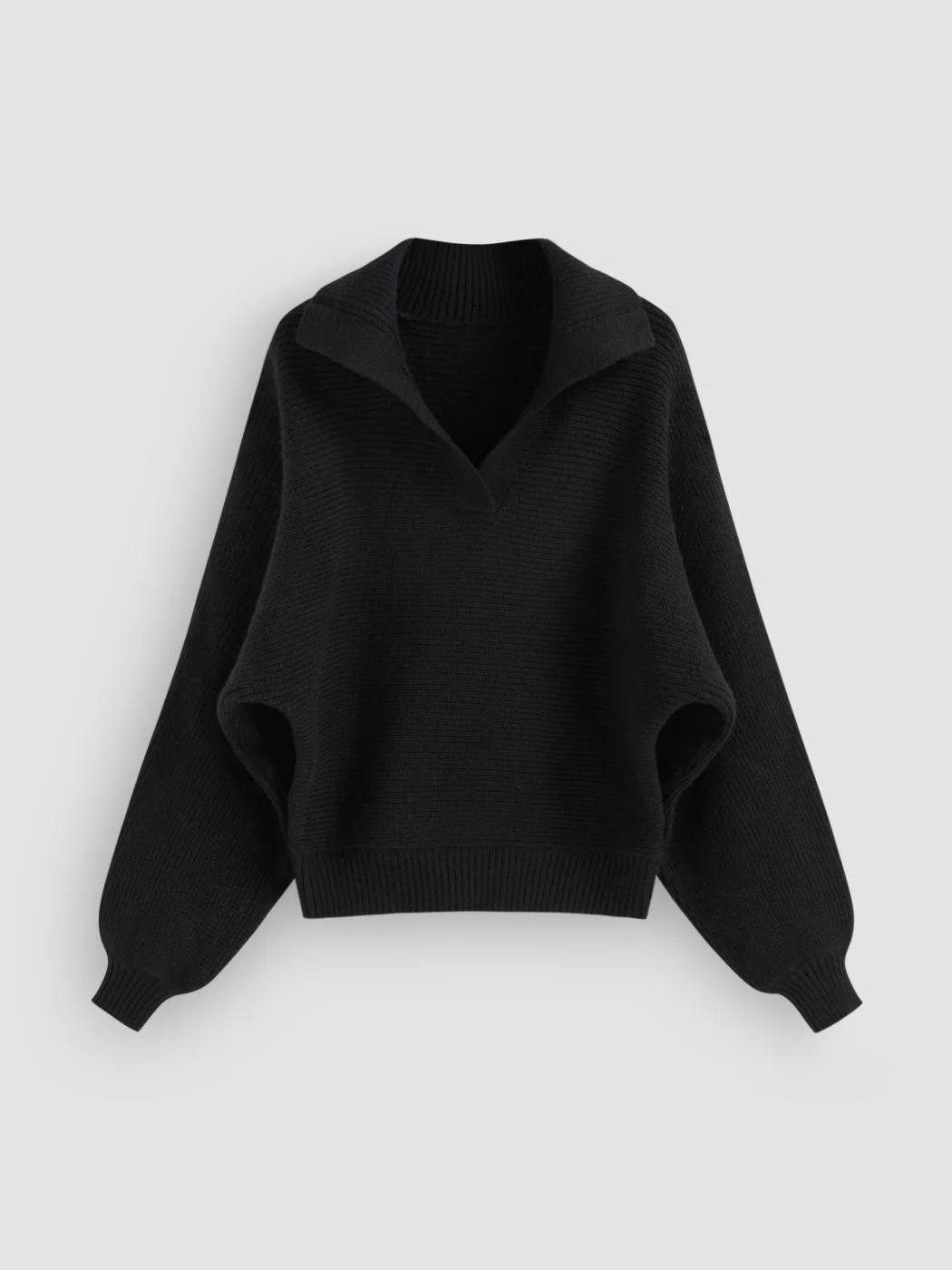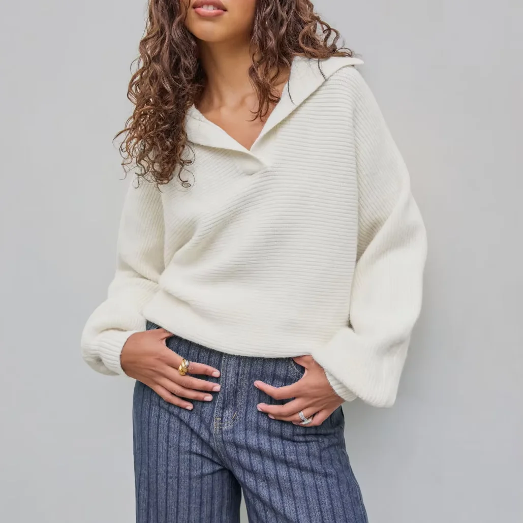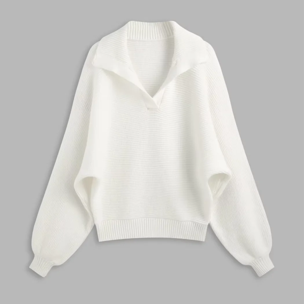 Custom Women's Polp Collar Long Sleeve Knit Sweater Solid Colors School Casual V-Neck Top Loose Pullover