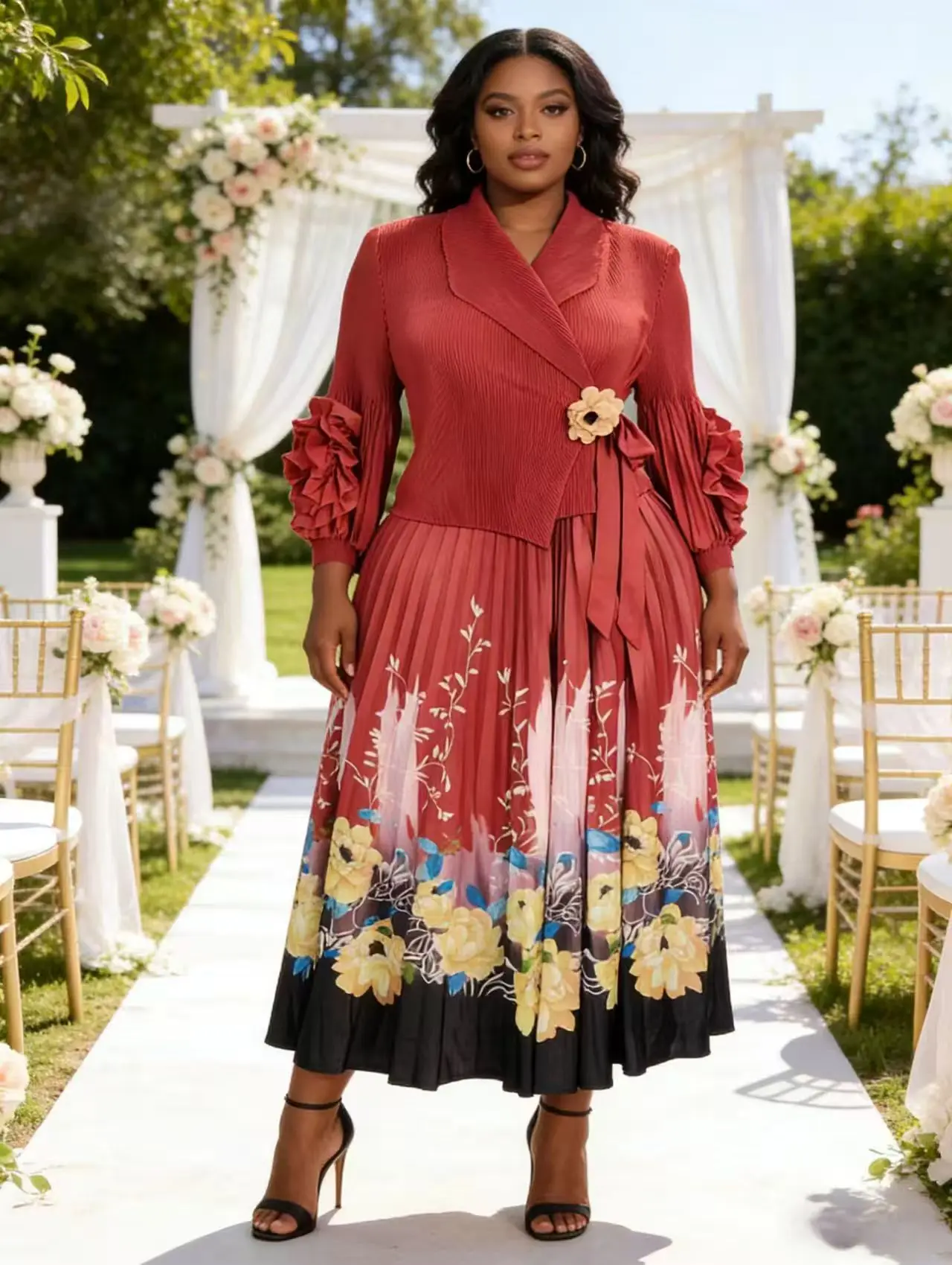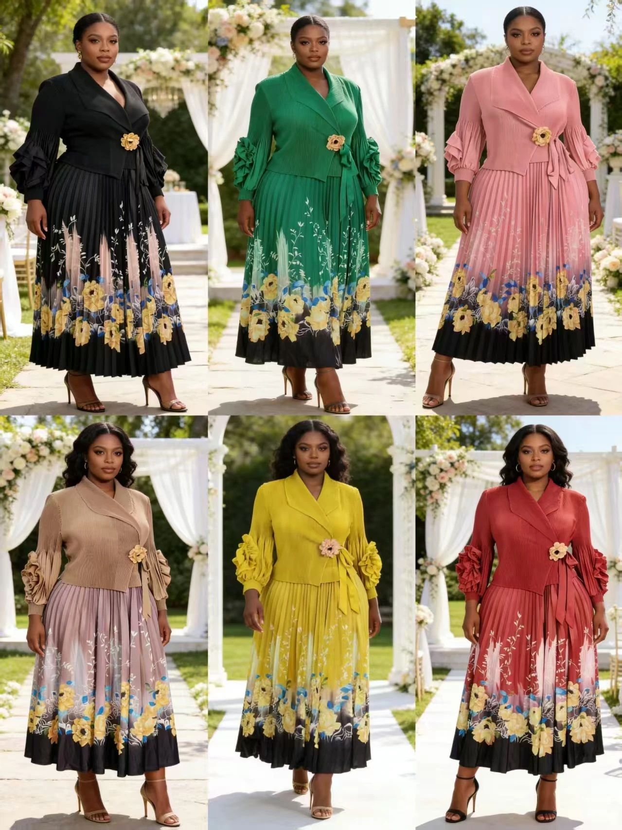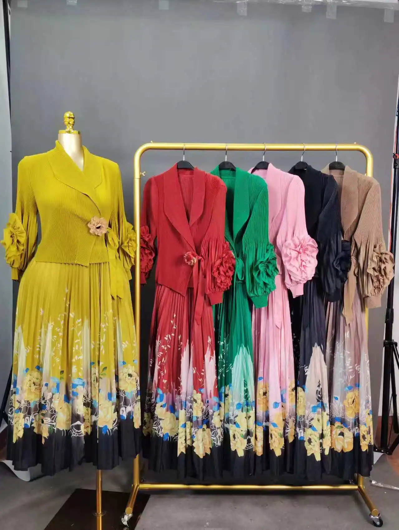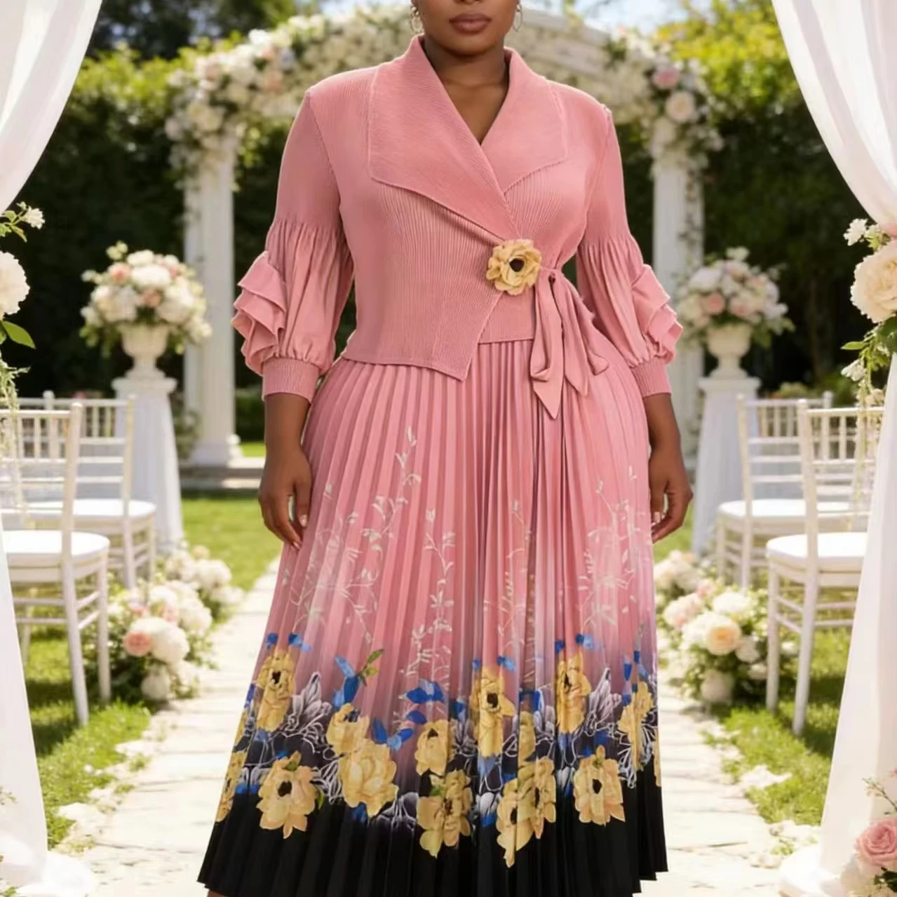 Wholesale 2026 Latest Miyake Plus Size Women Dress Lady Elegant Modest Floral Print Maxi African Birthday Party Pleated Dress