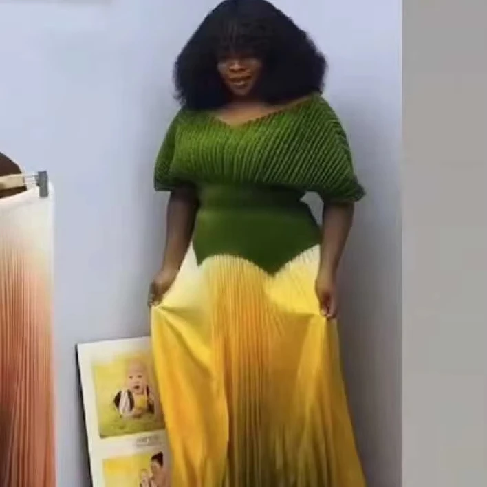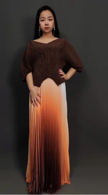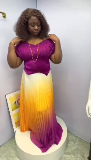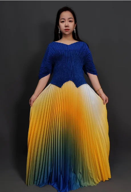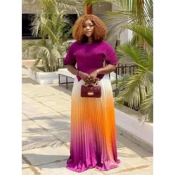 Sheen Factory Miyaki New Arrival Casual Stylish Plus Size Color Blocking Pleated Two Pieces Skirt Set Women Dress