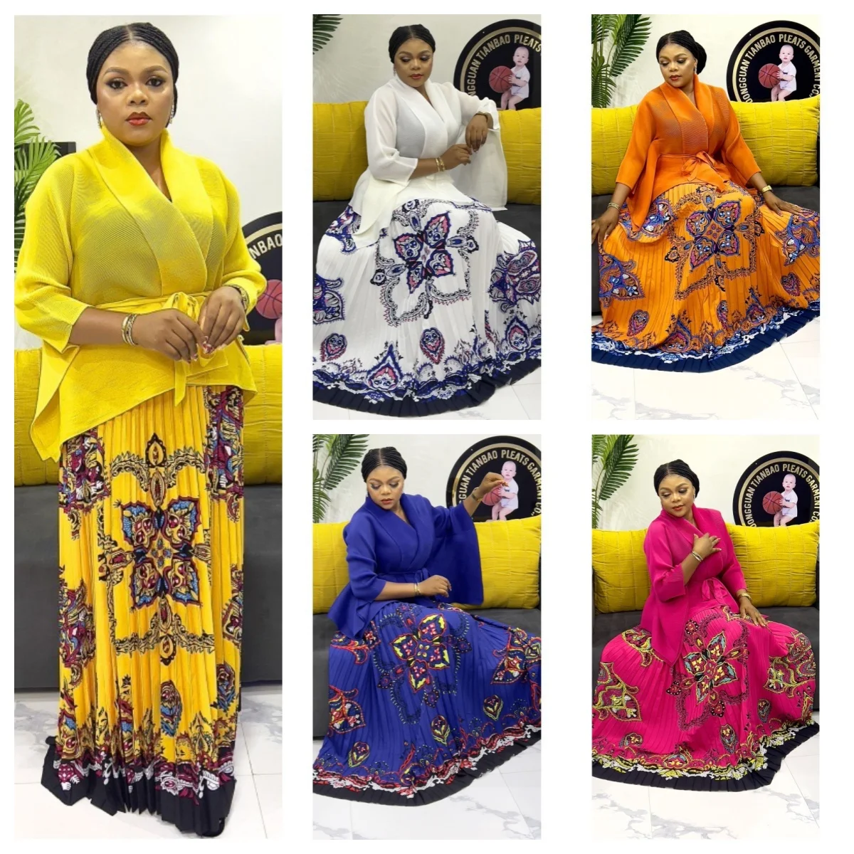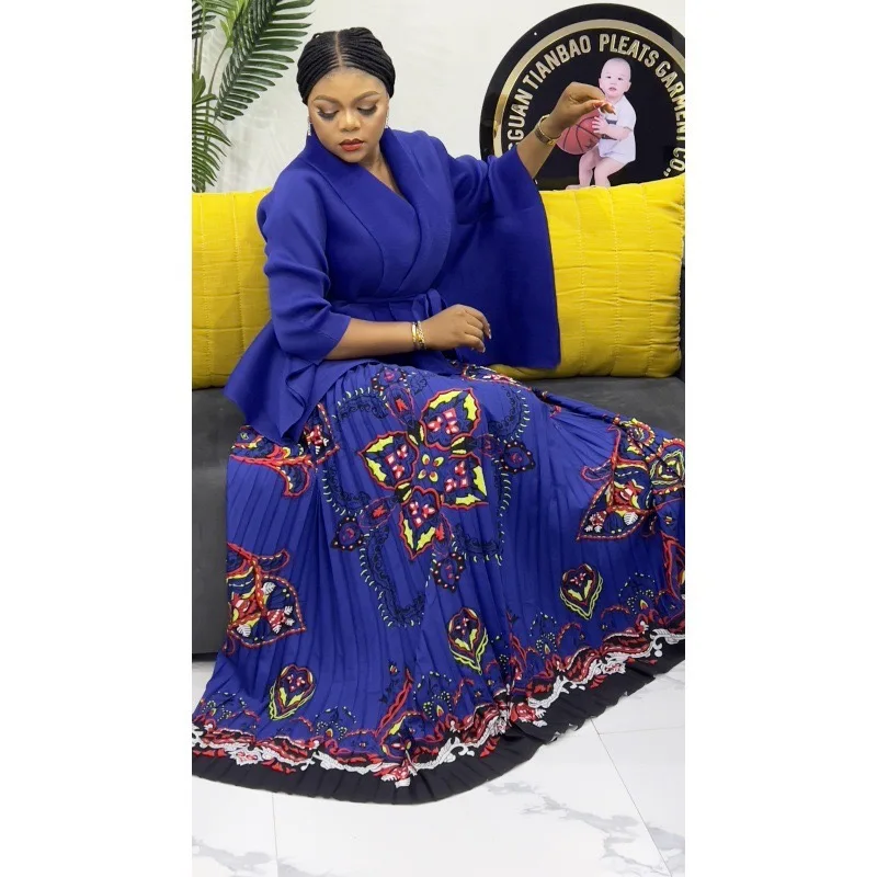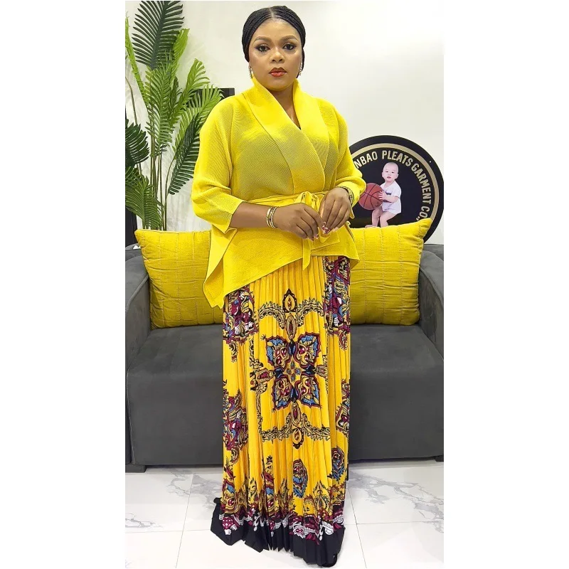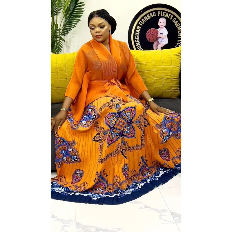 Modern New Traditional Floral Design Plicated Miyaki Plus Size Women Casual Africa Stylish Two Pieces Skirt Set Clothing