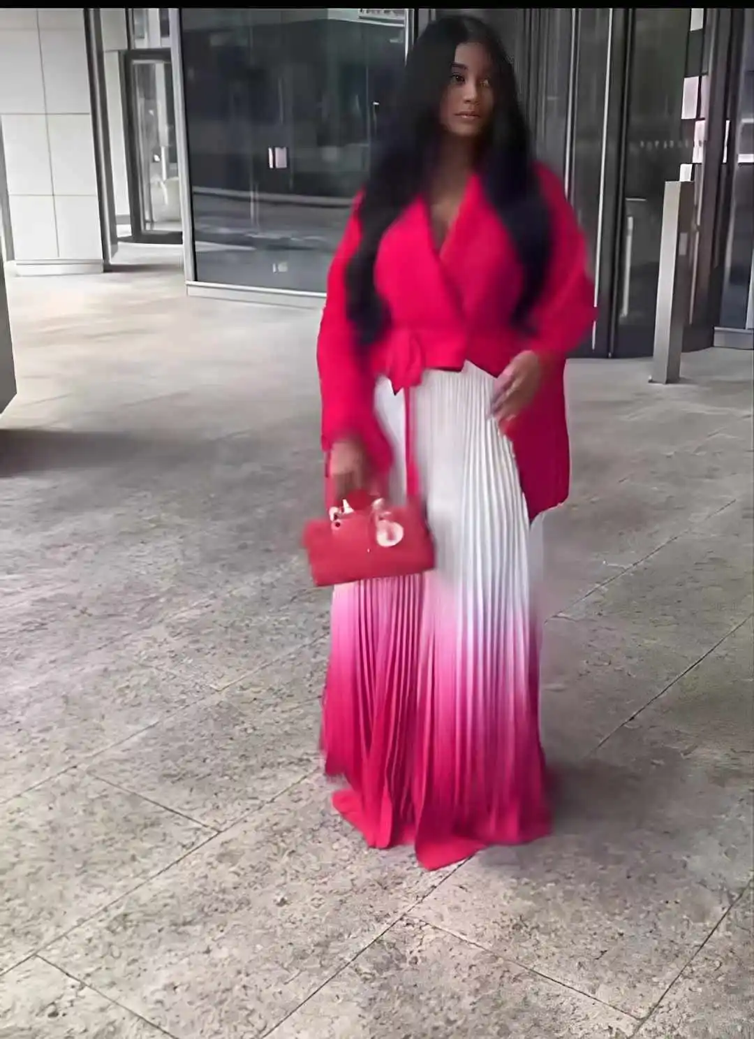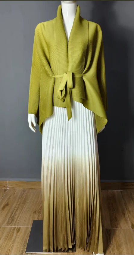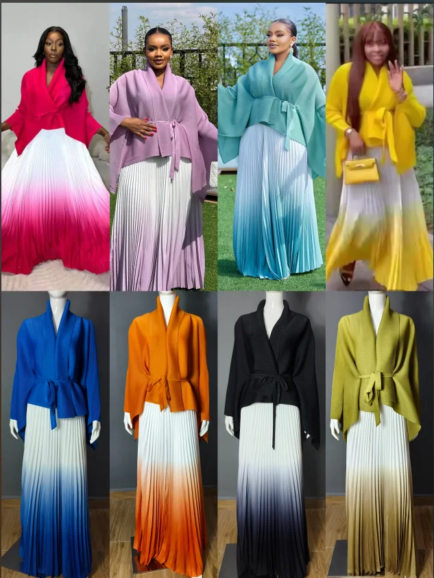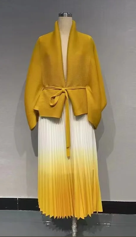 High Quality Casual Style Gradient Color Miyake Pleated Plus Size Women's 2 Pieces Skirt Set Dress