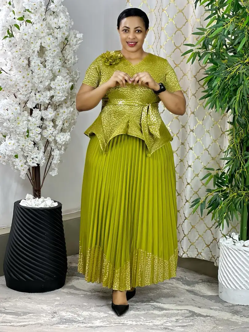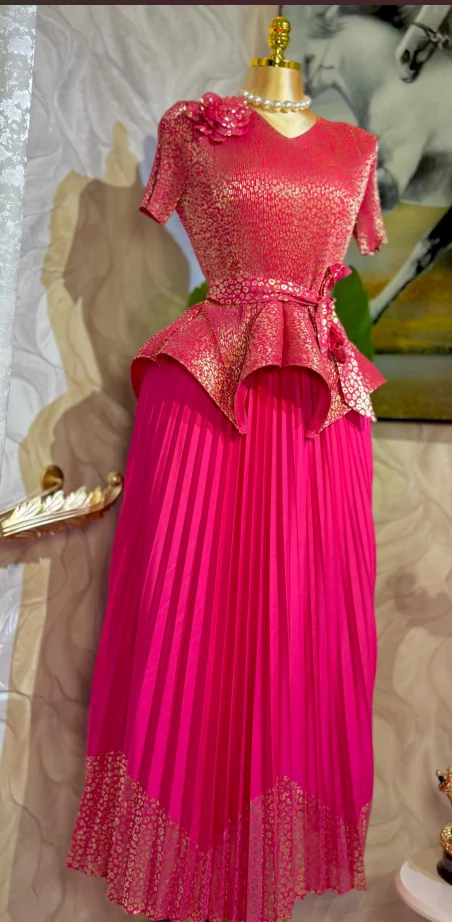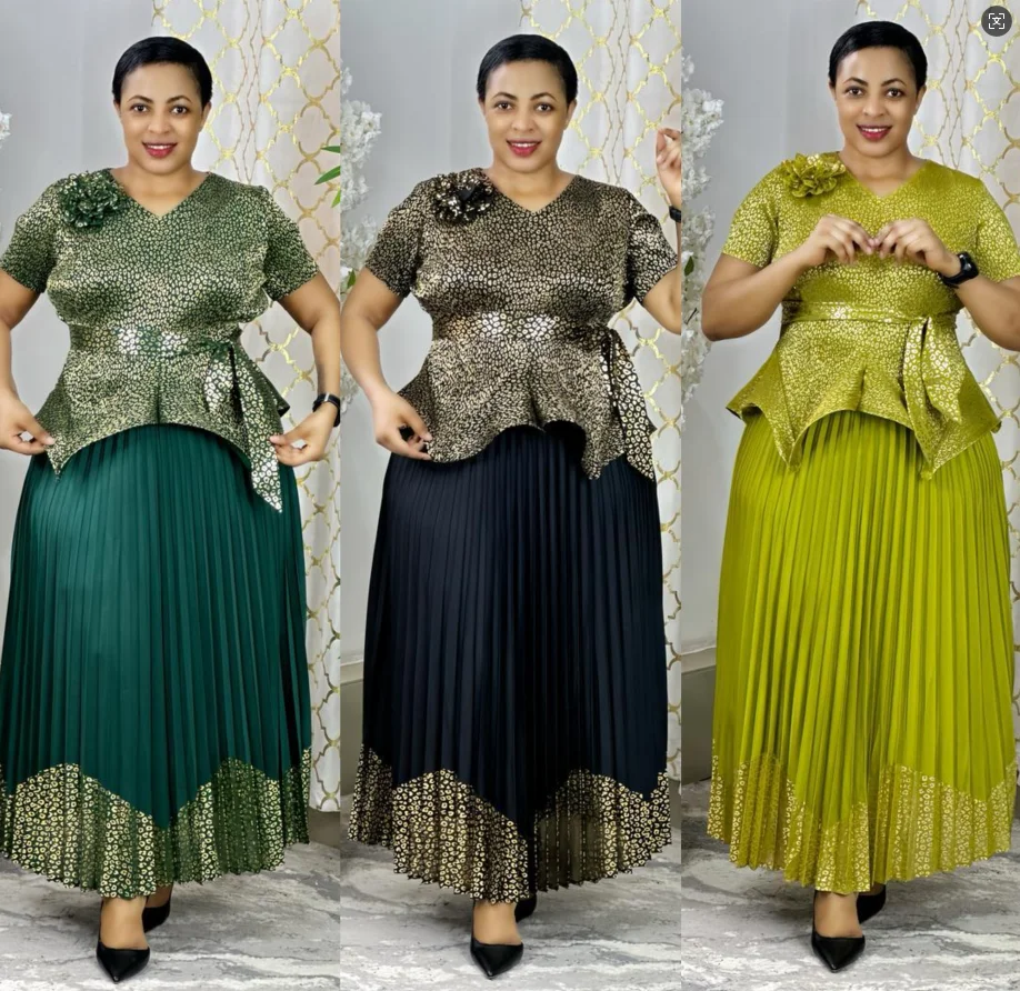 Factory New Collection Summer Season Casual Elegant Issey Miyaki Pleat Short Sleeves Solid Color Plus Size Two Pieces Set