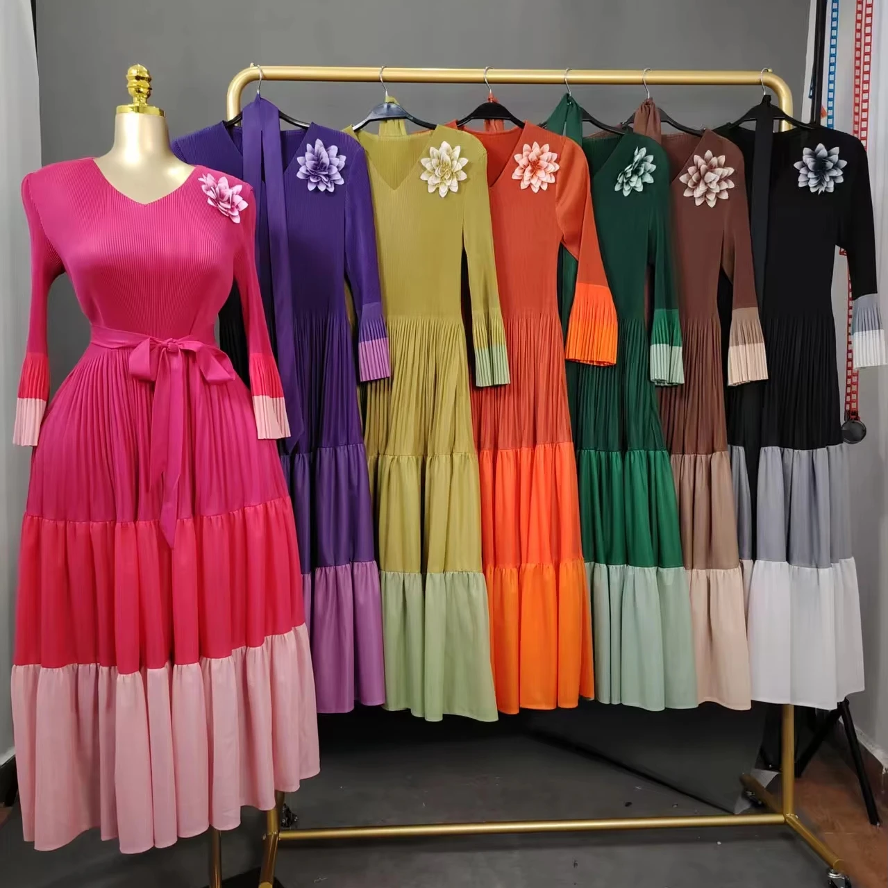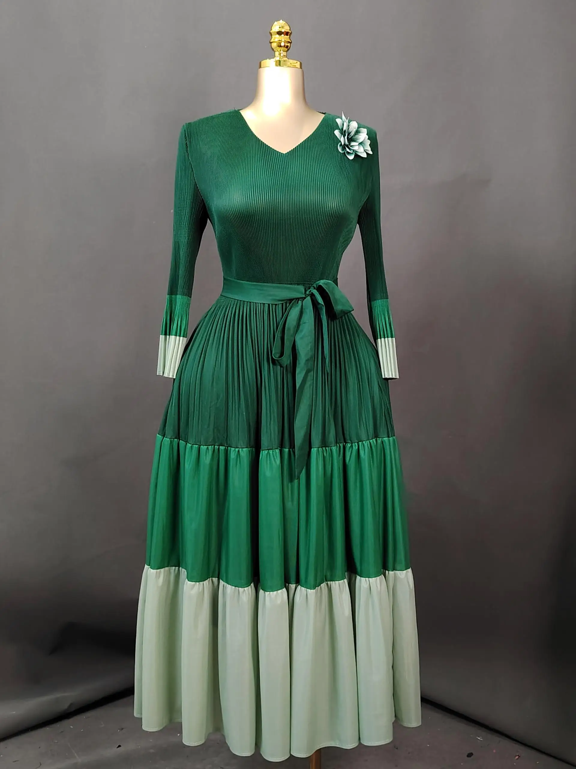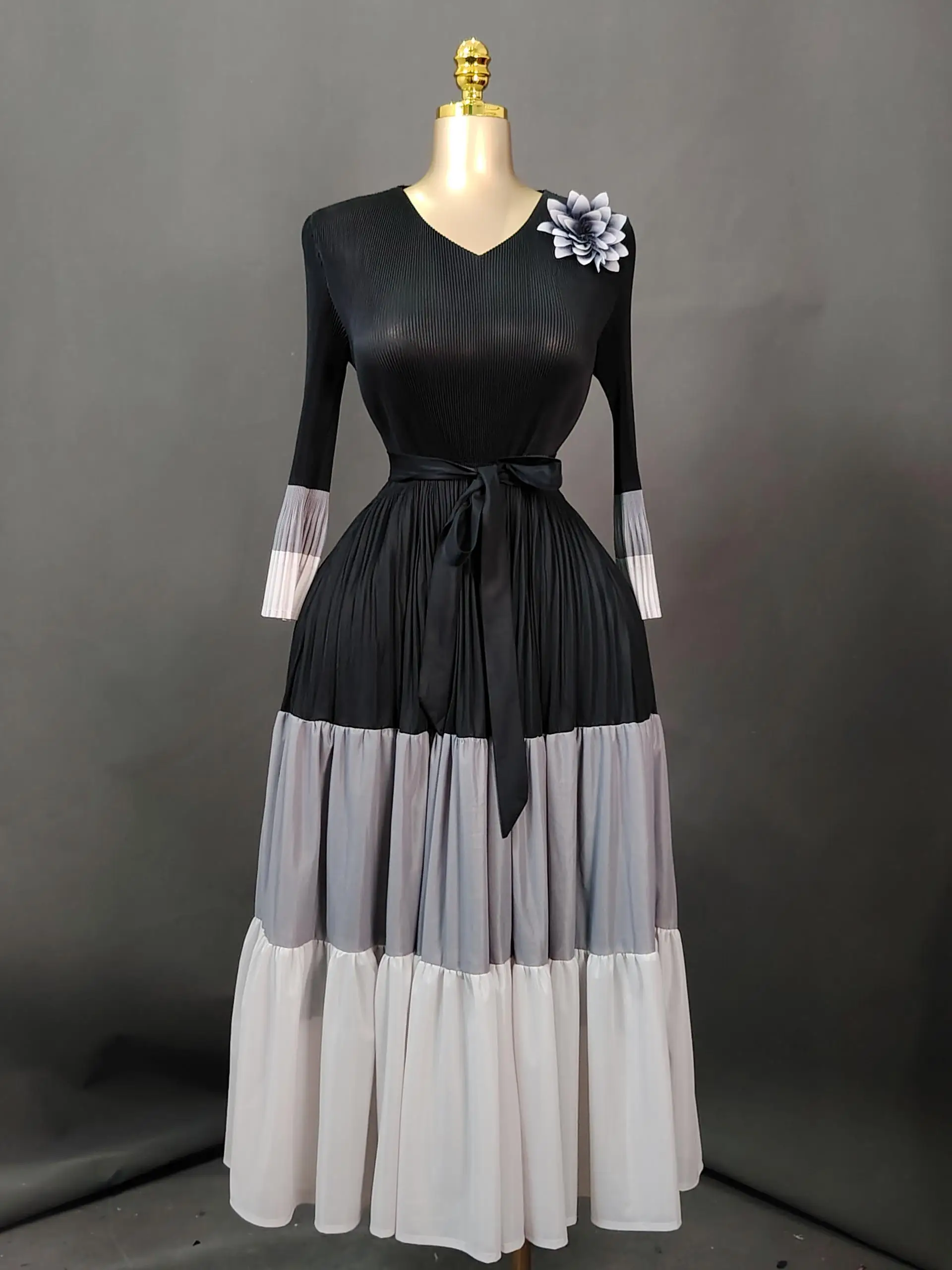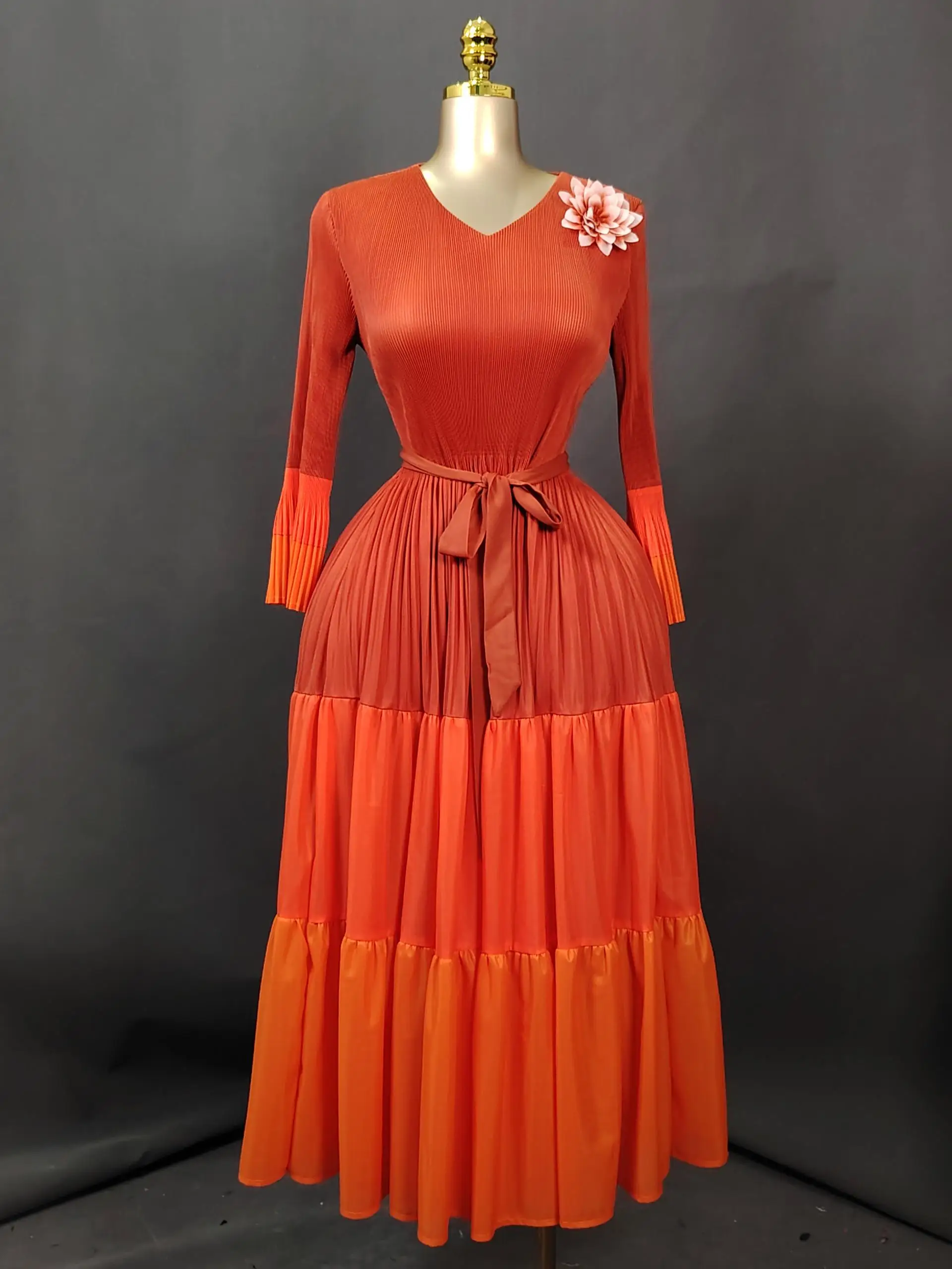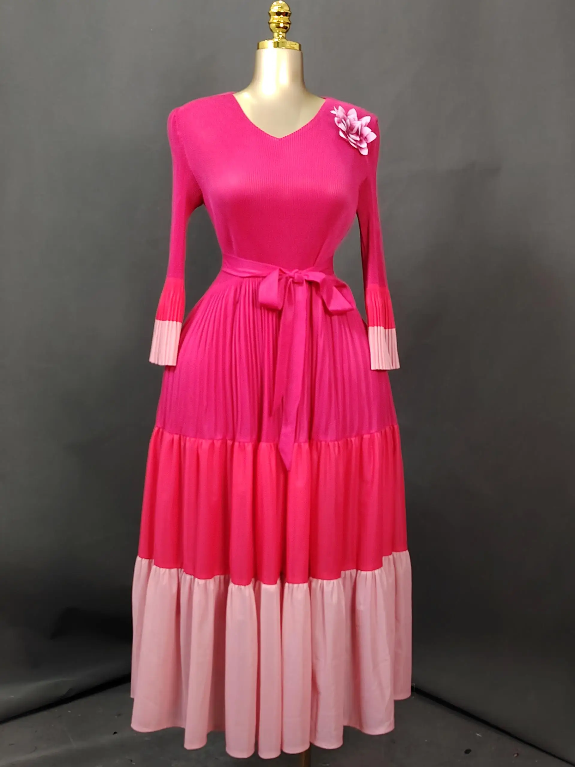 Sheen Original Pleated Style Fancy Plus Size Elegant High-End Autumn Miyaki Long Casual Dress for Distinguished Ladies
