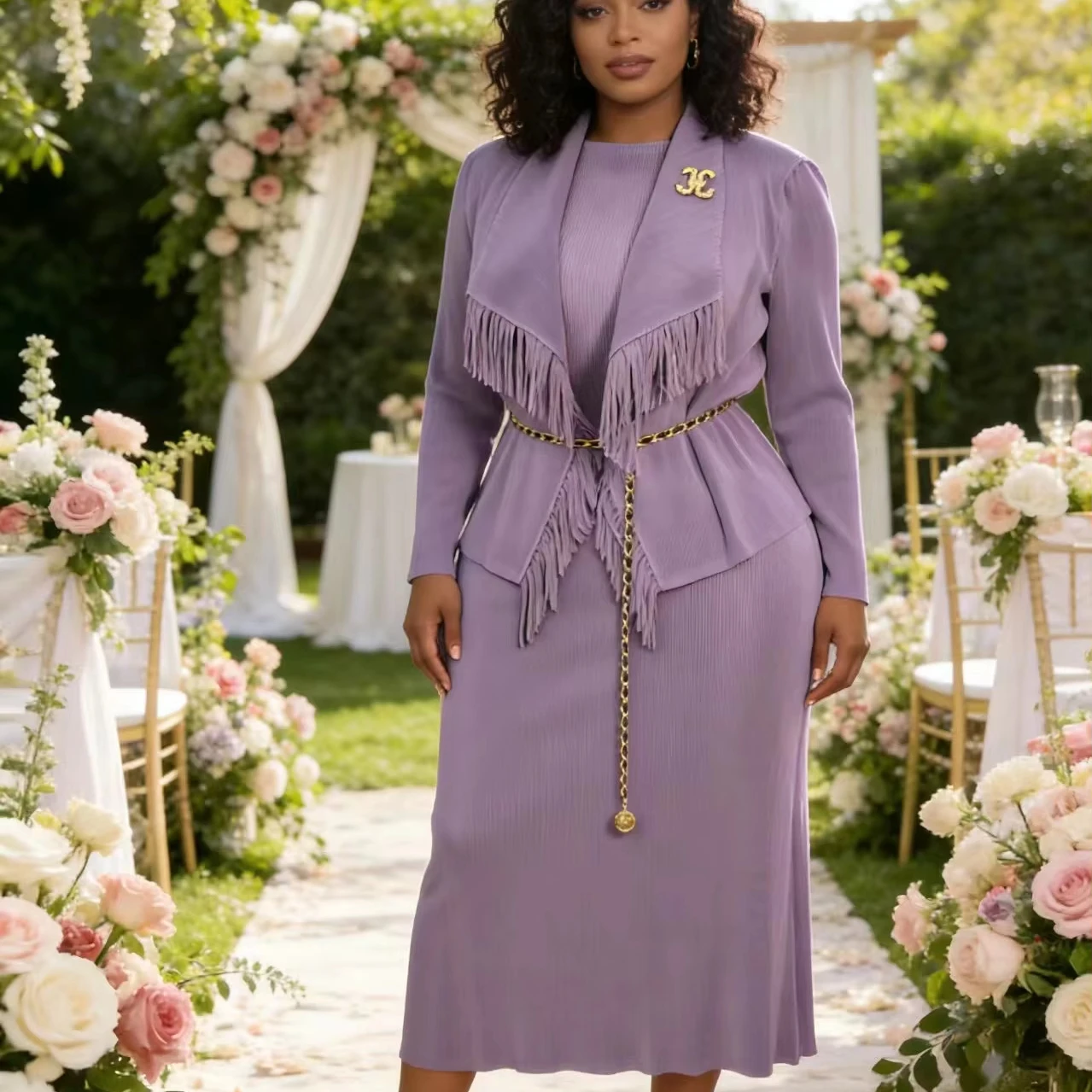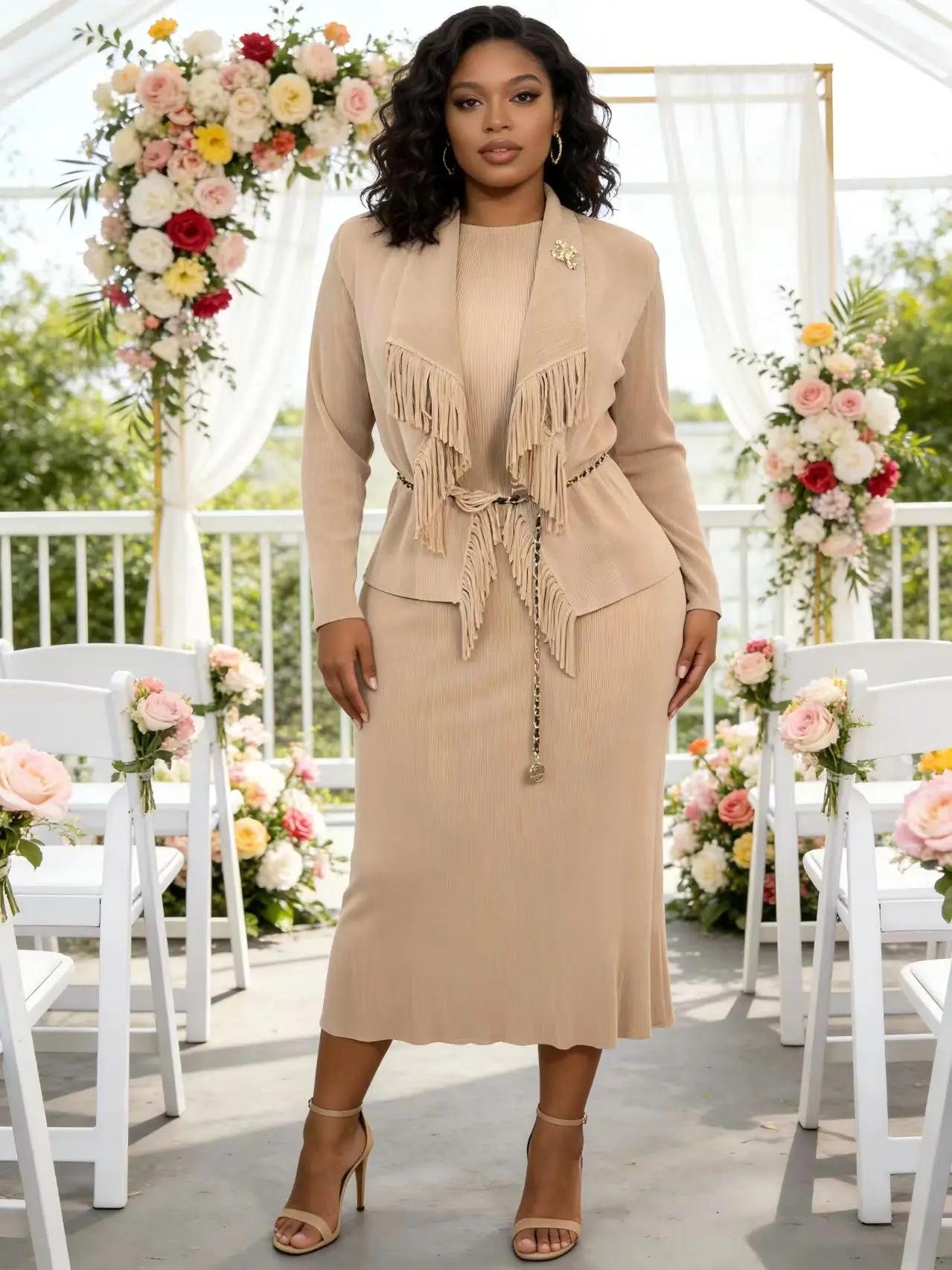 Plus Size Skirts for African Women Elegant Casual High Quality Solid Color Miyake Ladies Party Pleated Two Piece Skirt Set