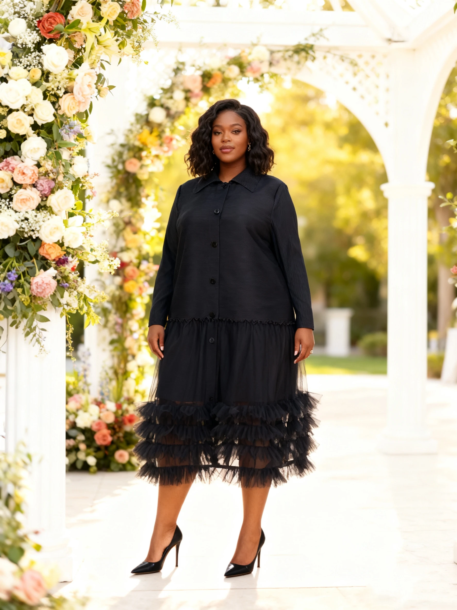 ZYHT 35239 Women's Elegant Black Velvet Blazer with White Ruffled Trim Peplum Hem & Long Puff Sleeves Chic Formal Jacket