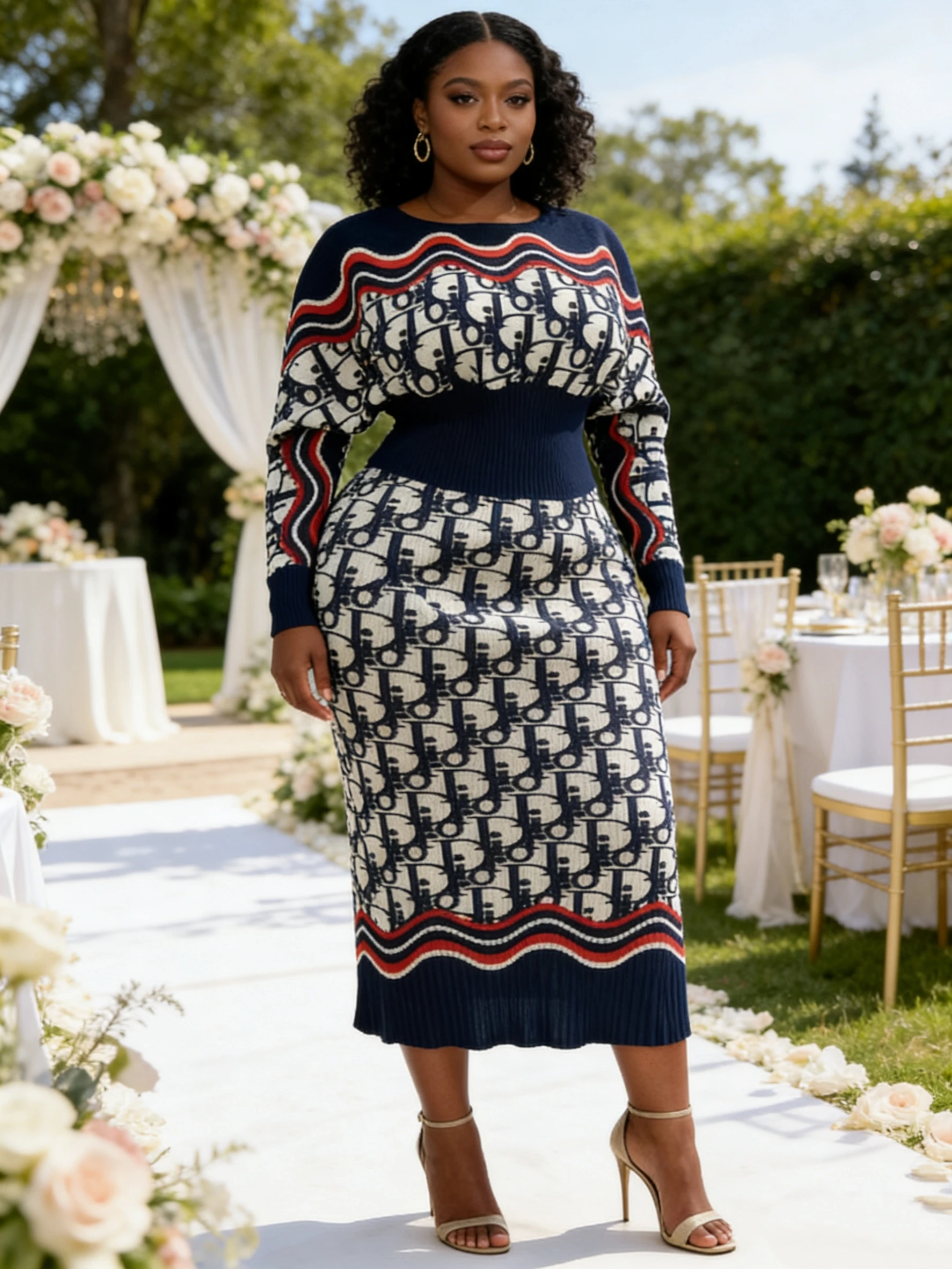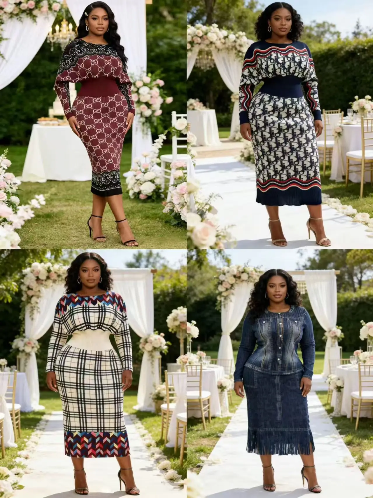 Wholesales African Plus Size Wedding Guest Knit Outfit Assorted Print Top High Waist Elegant Casual Women's Two-Piece Set