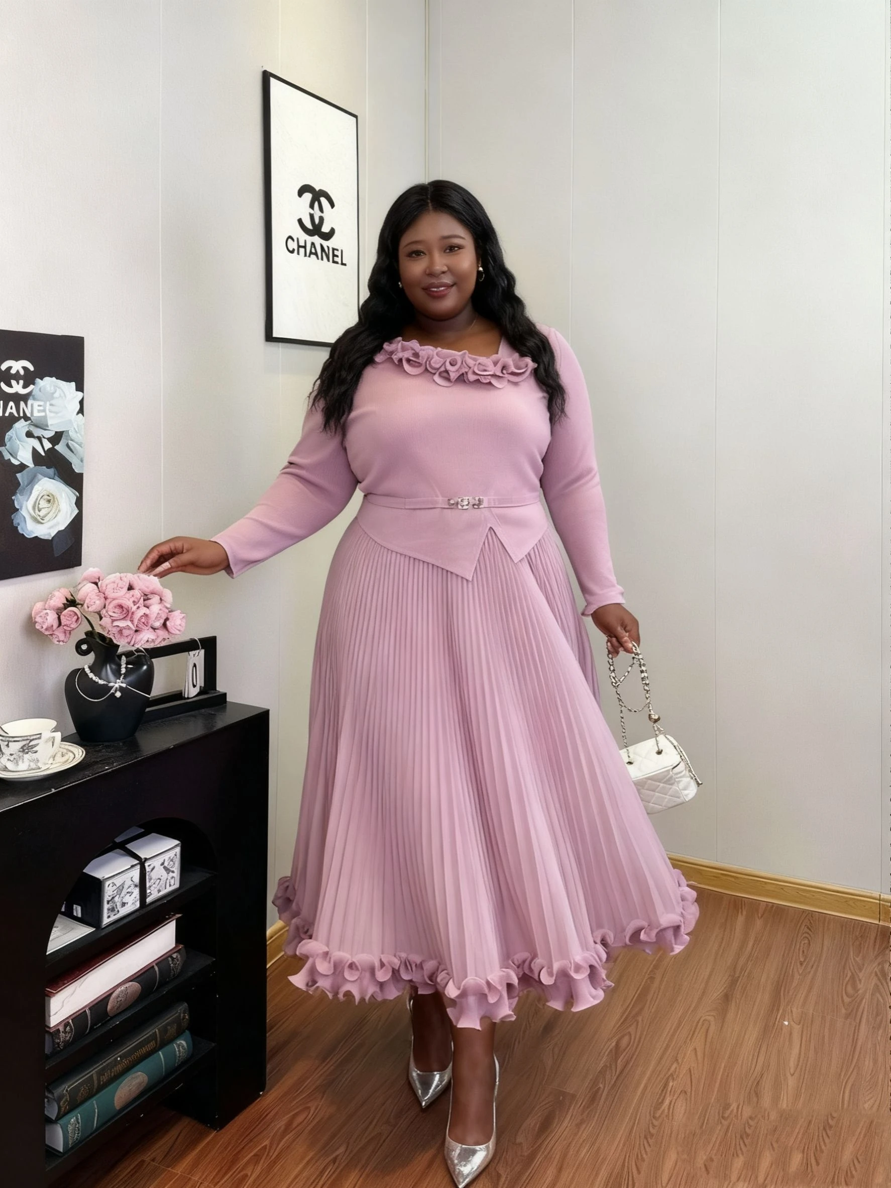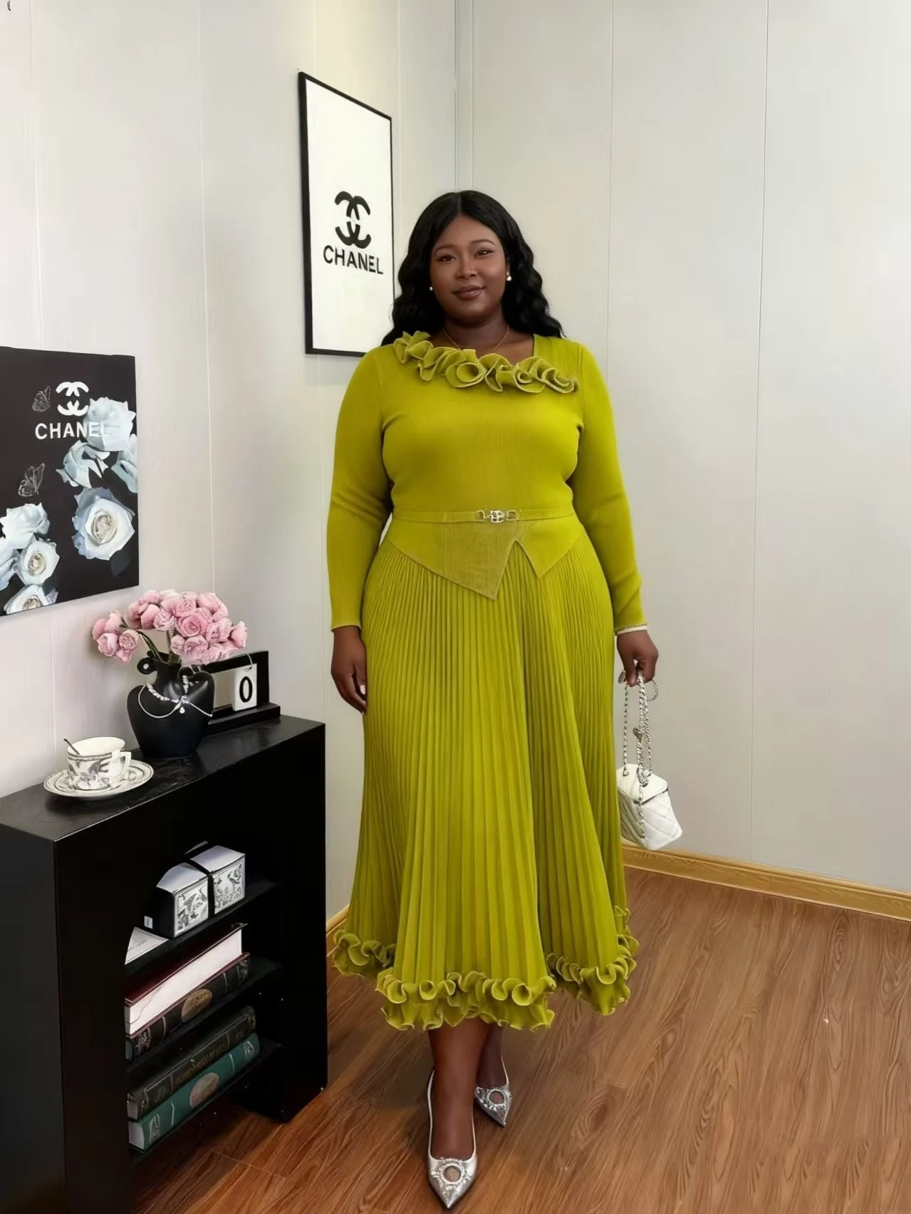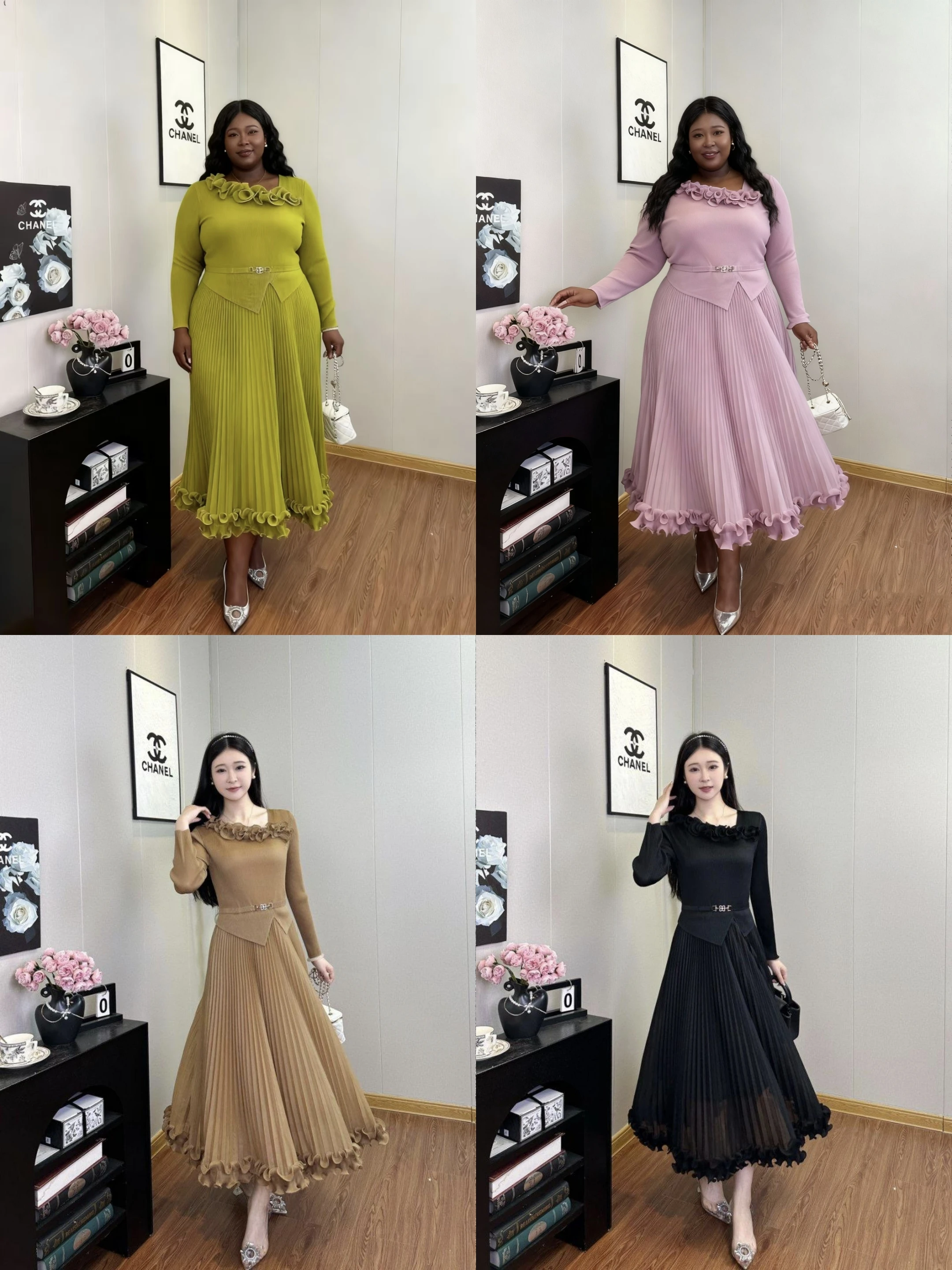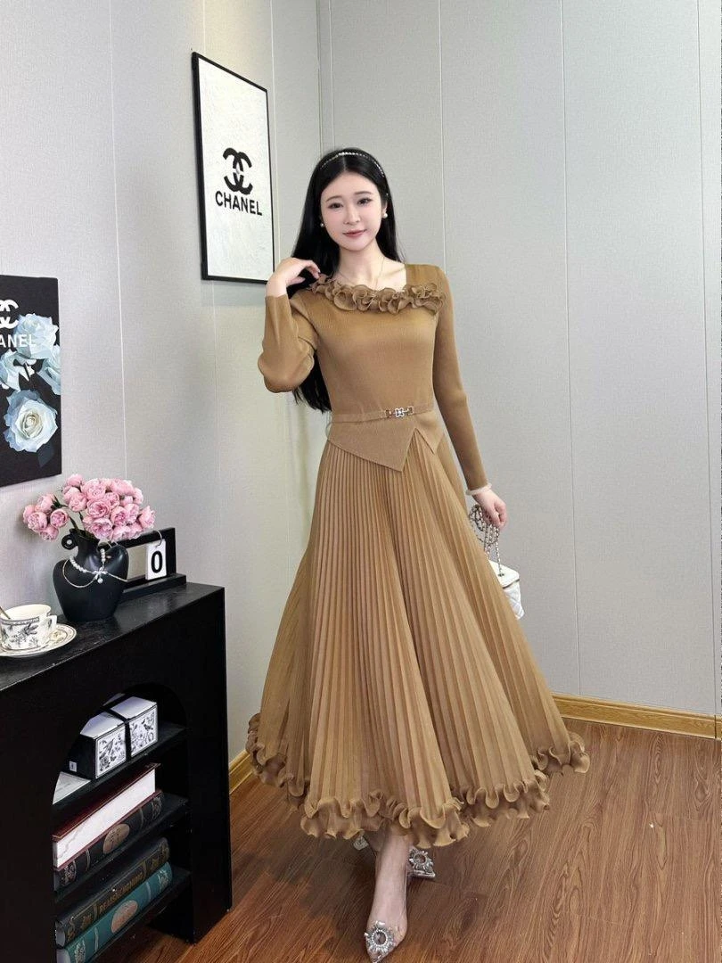 Latest Miyaki Elegant Fashion Temperament Casual Long Sleeves Pleated Plus Size Solid Color Women Ladies Party Dress