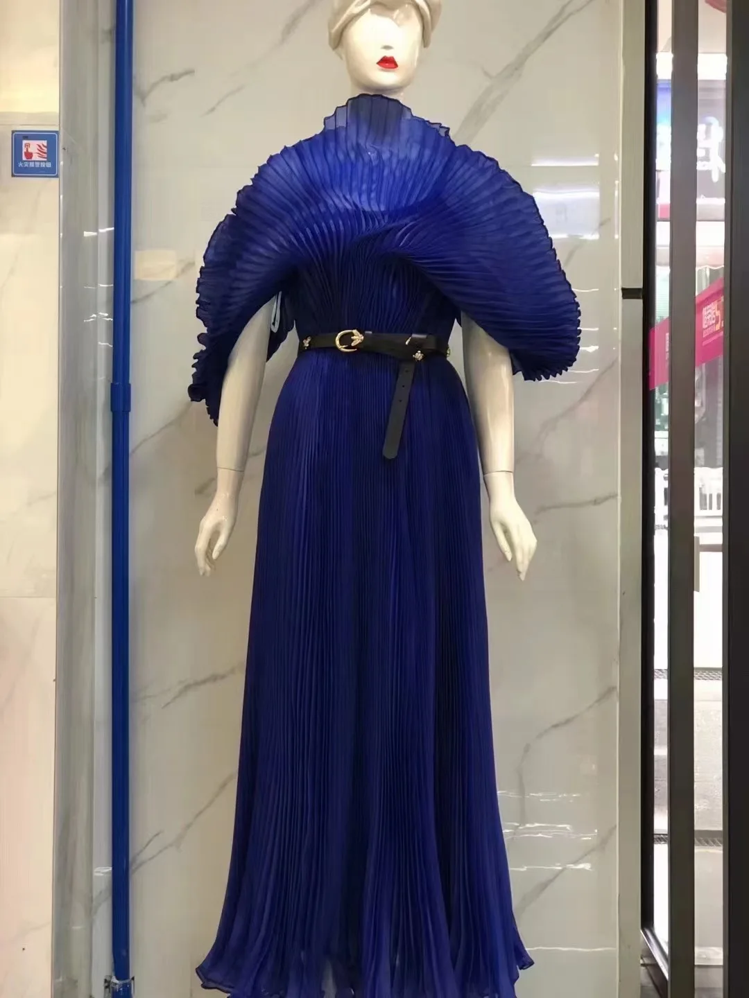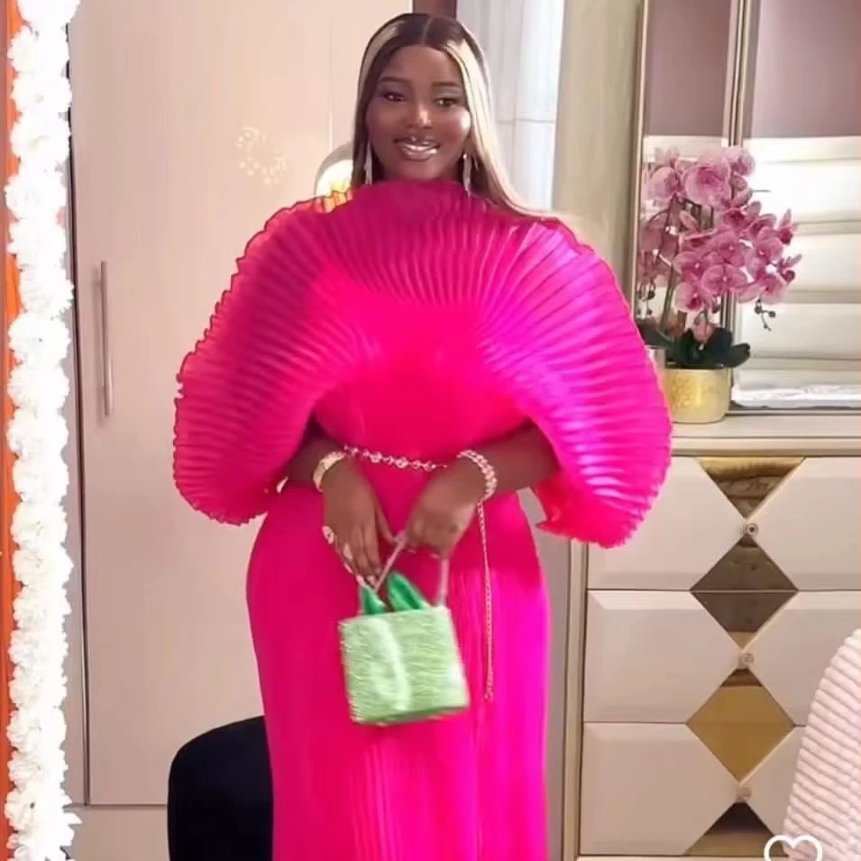 Newest Casual Factory Outlet Elegant Temperament Fashion Solid Color Plus Size Miyake Pleated Women Party Long Dress