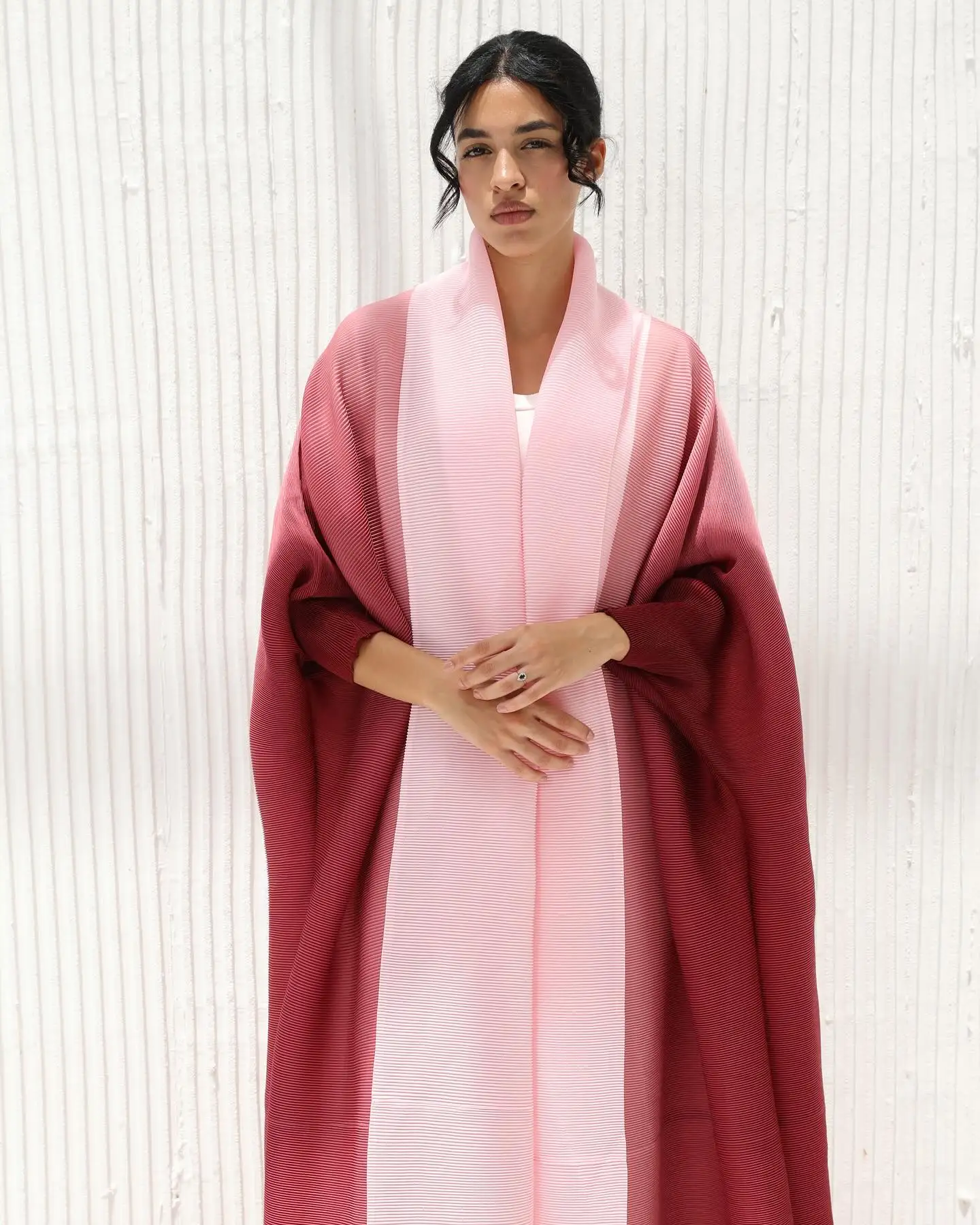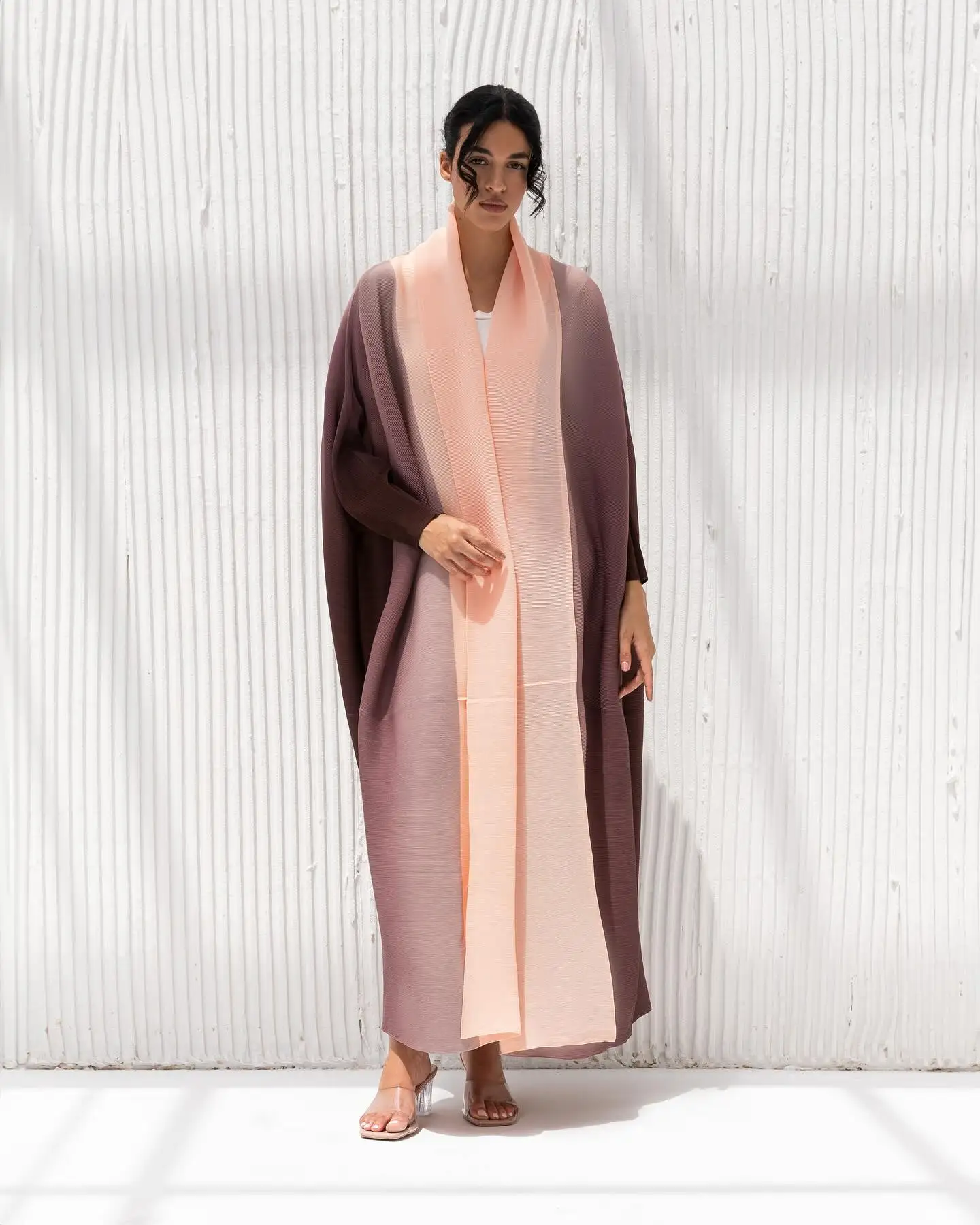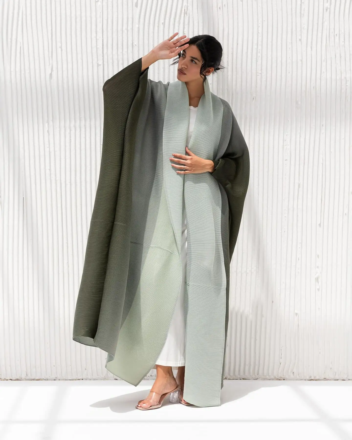 High Quality Gradient Color Open Cardigan Abaya Kaftan Islamic Dubai Miyake Pleated Plus Size Traditional Women Muslim Dress