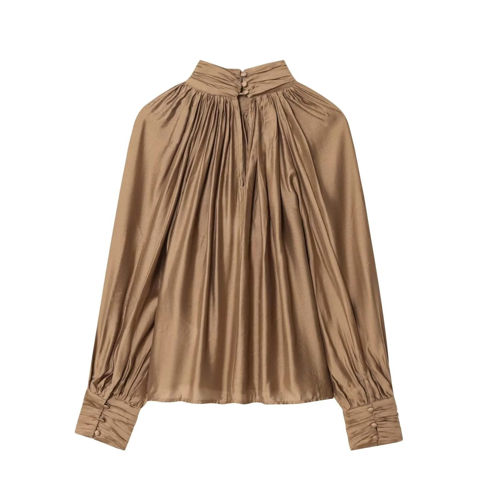 Women's Vintage Long-Sleeved Advanced Elegant Simple Solid Color Polyester Casual Blouse