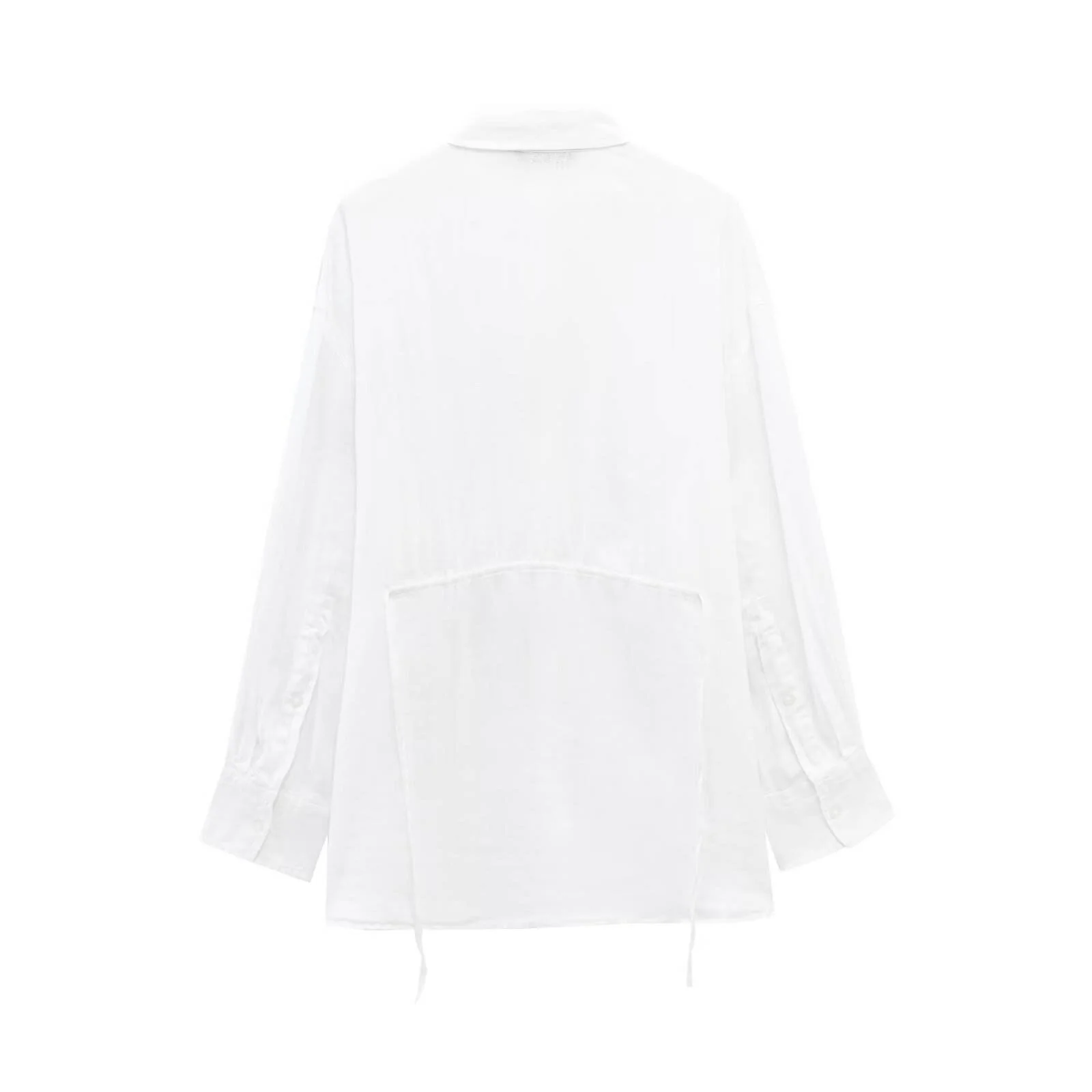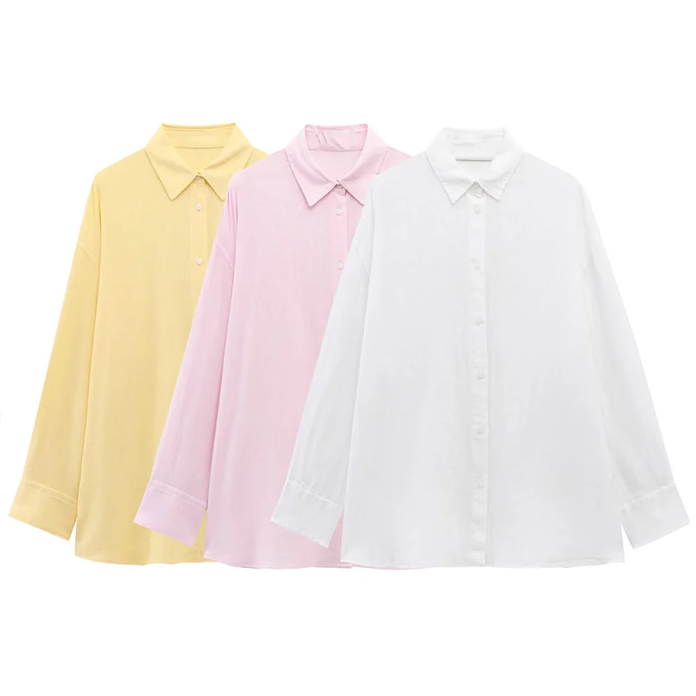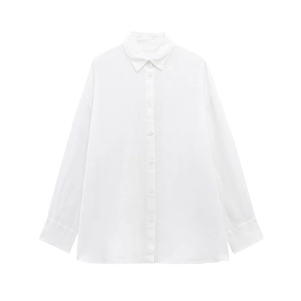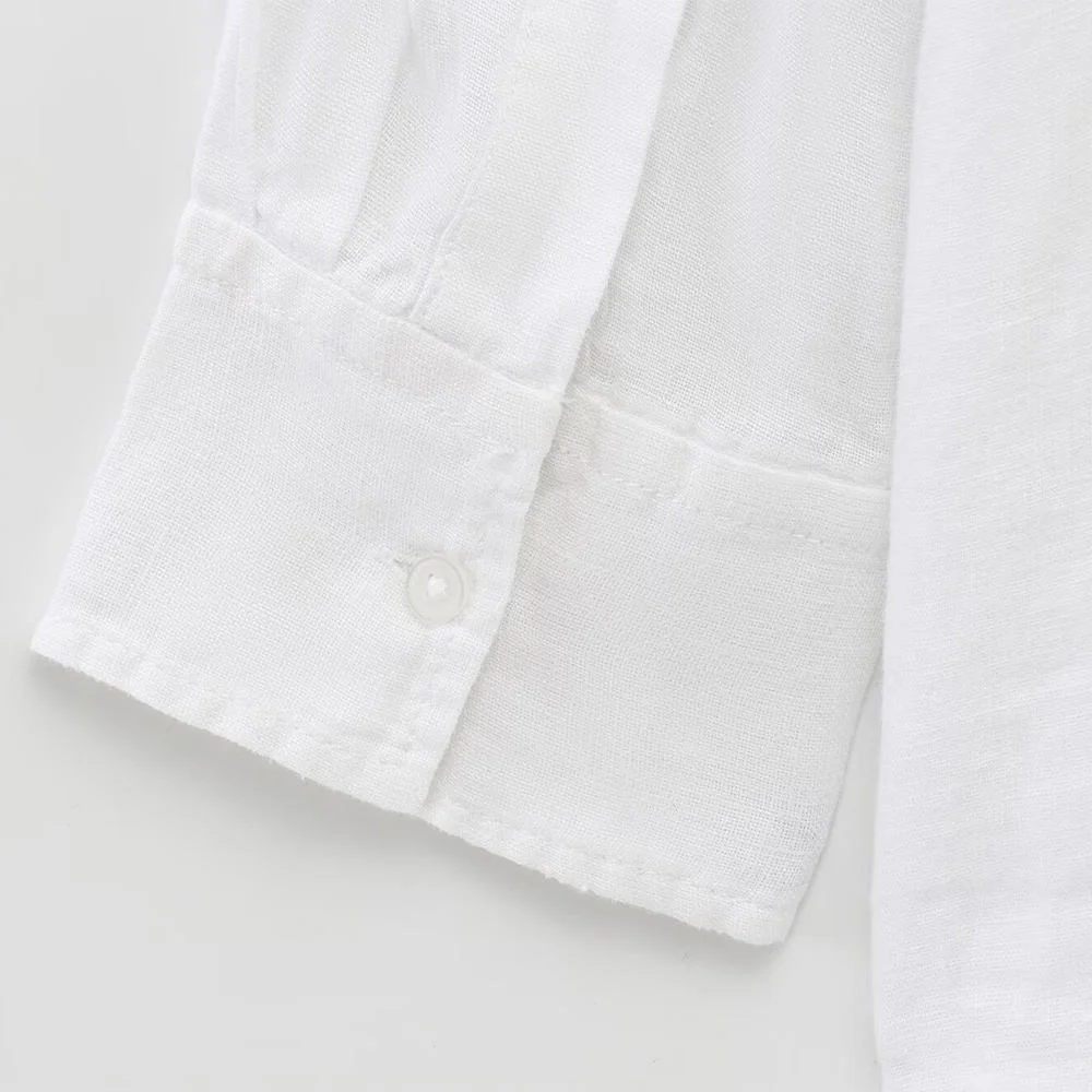Women Summer Casual Simple Solid Linen Regular Mandarin Collar Long Sleeve Shirts