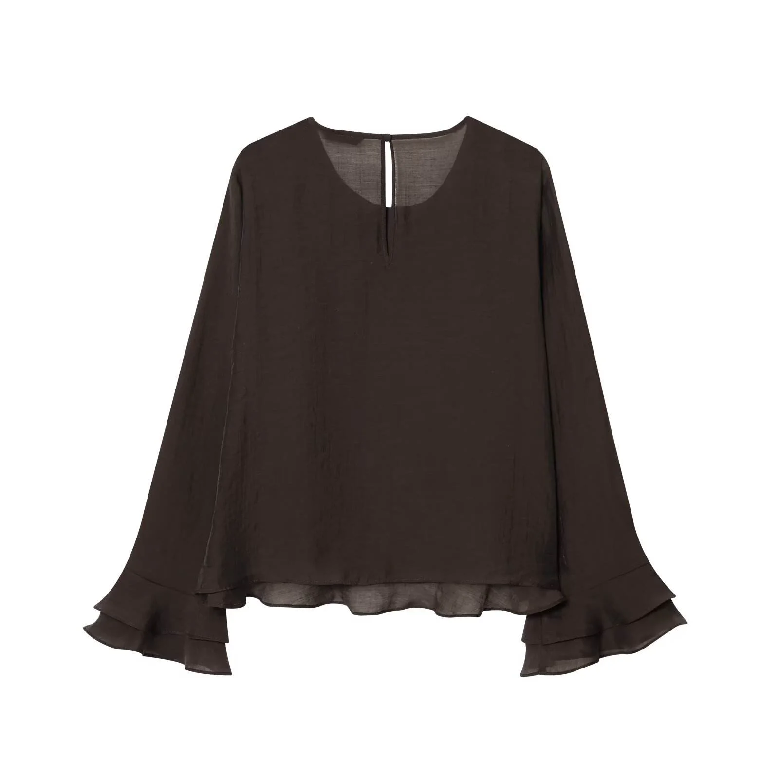 Women's 2025 Summer New Casual Fashion Crew Neck Shirt Top Retro Long-sleeved Blouse