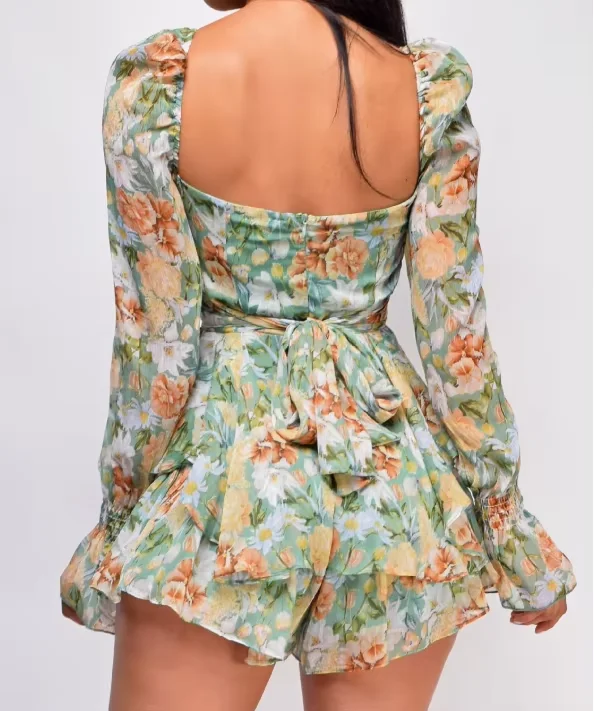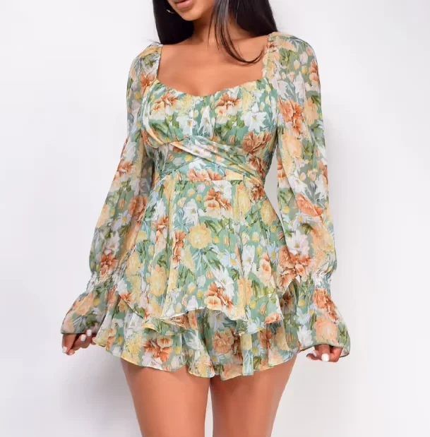 2025 Women's Floral Pattern Summer Casual square Collar High Quality Birthday Dress