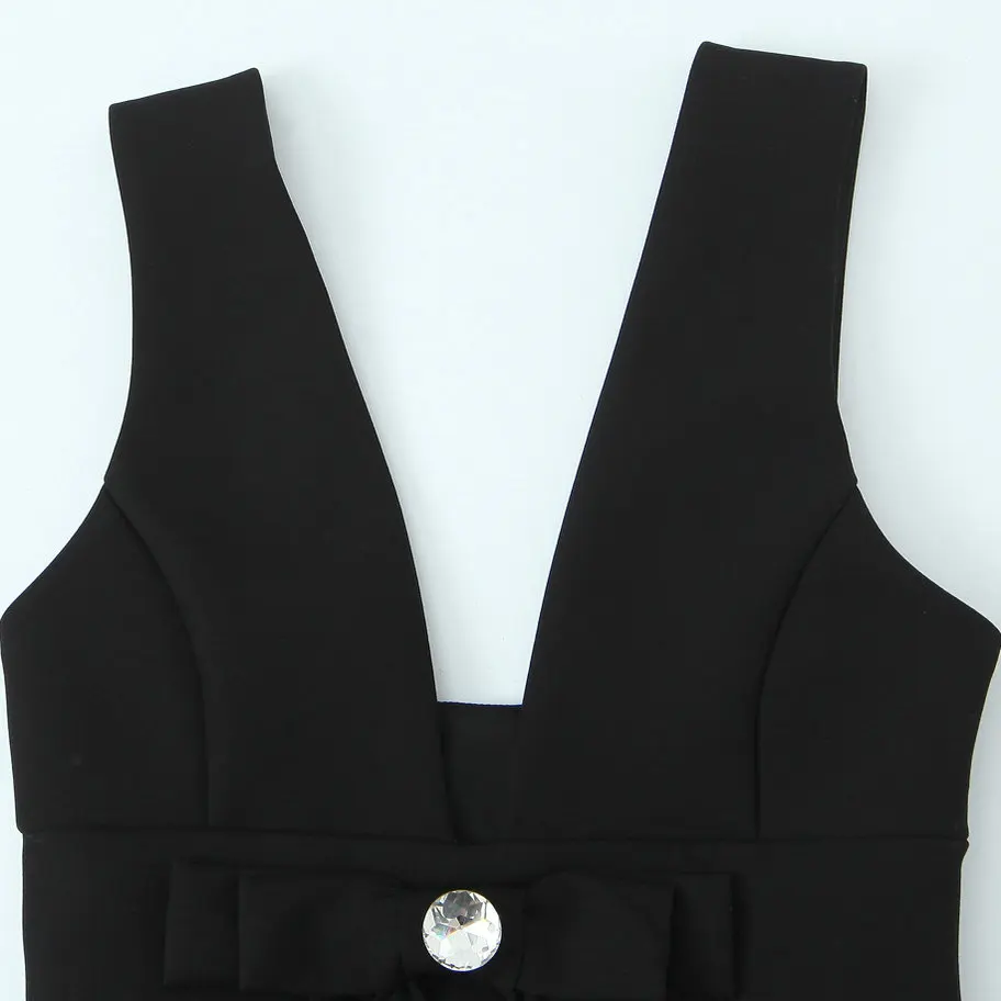 Summer Simple Mini Sleeveless Bowknot Decoration Birthday Black Elegant Dresses Women