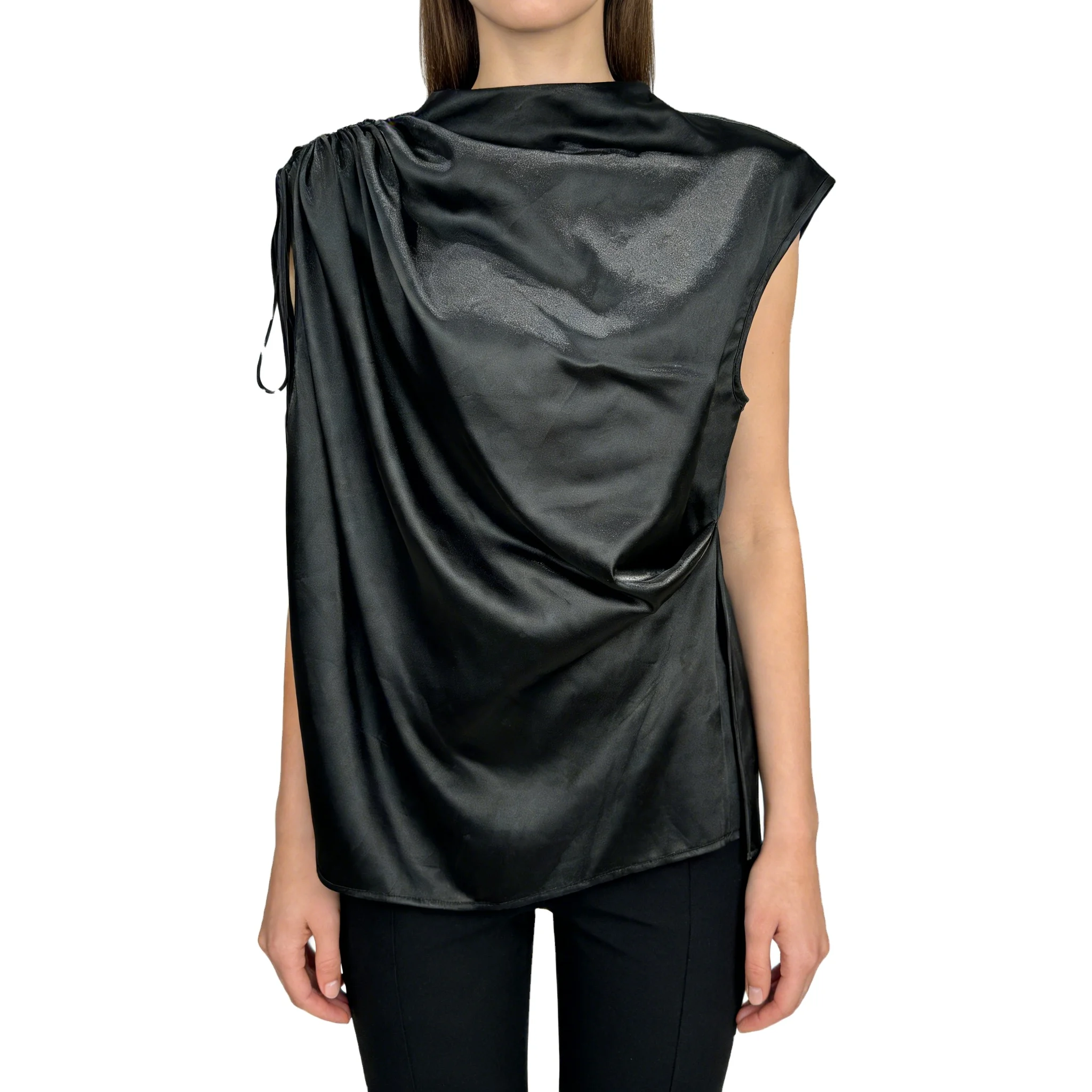 Simple With Button Black Fashion Vest Elegant Women Vest Blouses for Elegant Lady