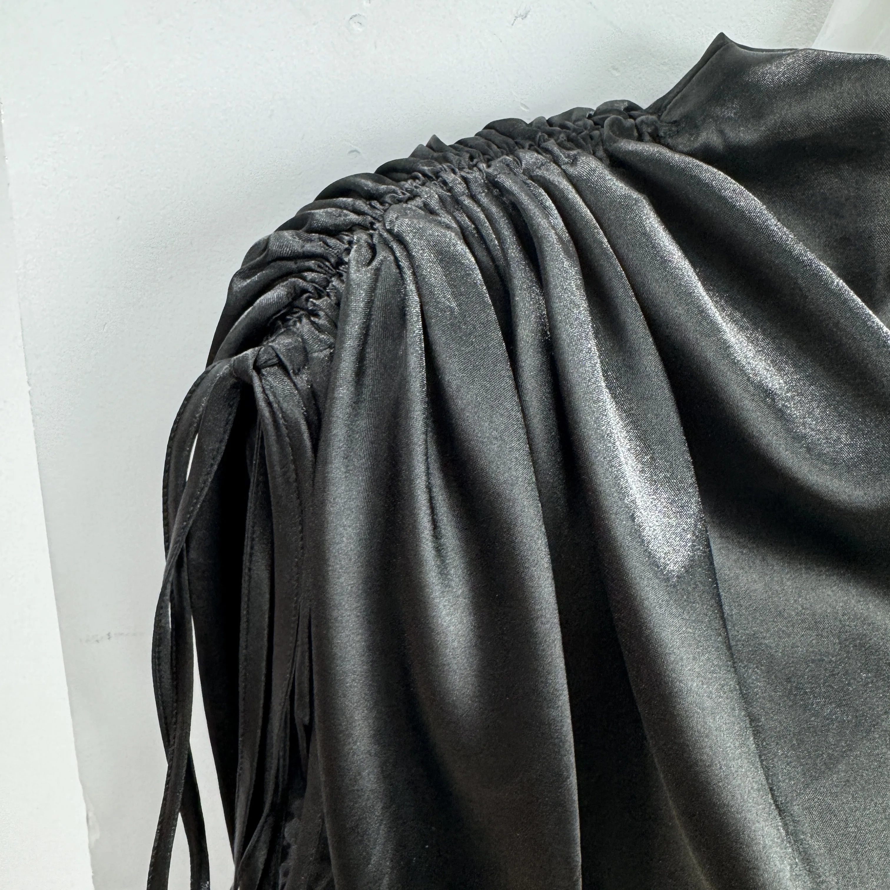 ZYHT 73849 European Wholesale Fashion Casual One Shoulder Ruched Maxi Dress Side Slit Pleated Long Sleeve Dresses for Women