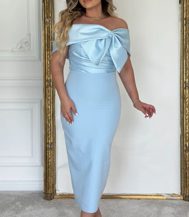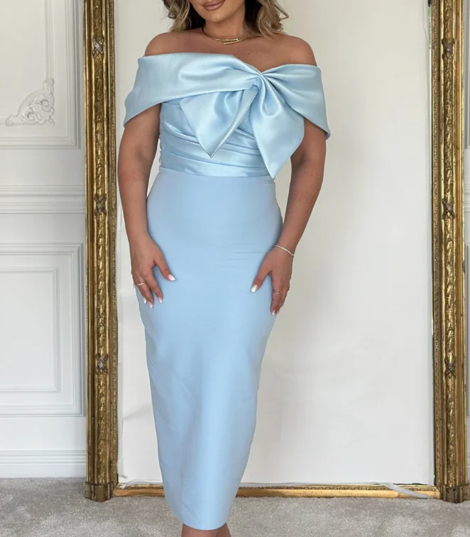 Advanced Light Blue Wedding Dress Bow Elegant Formal Dresses Long Evening Dress for Women