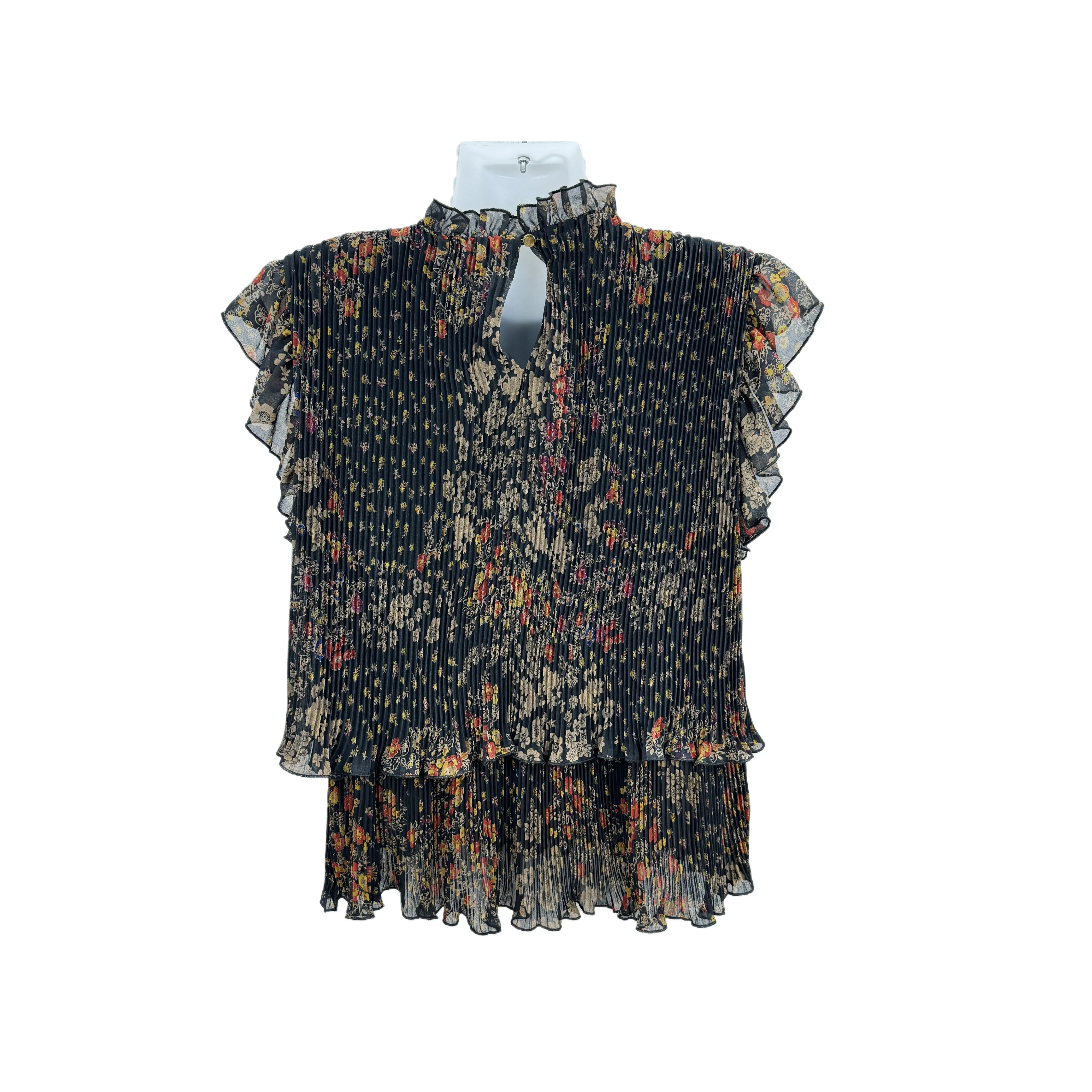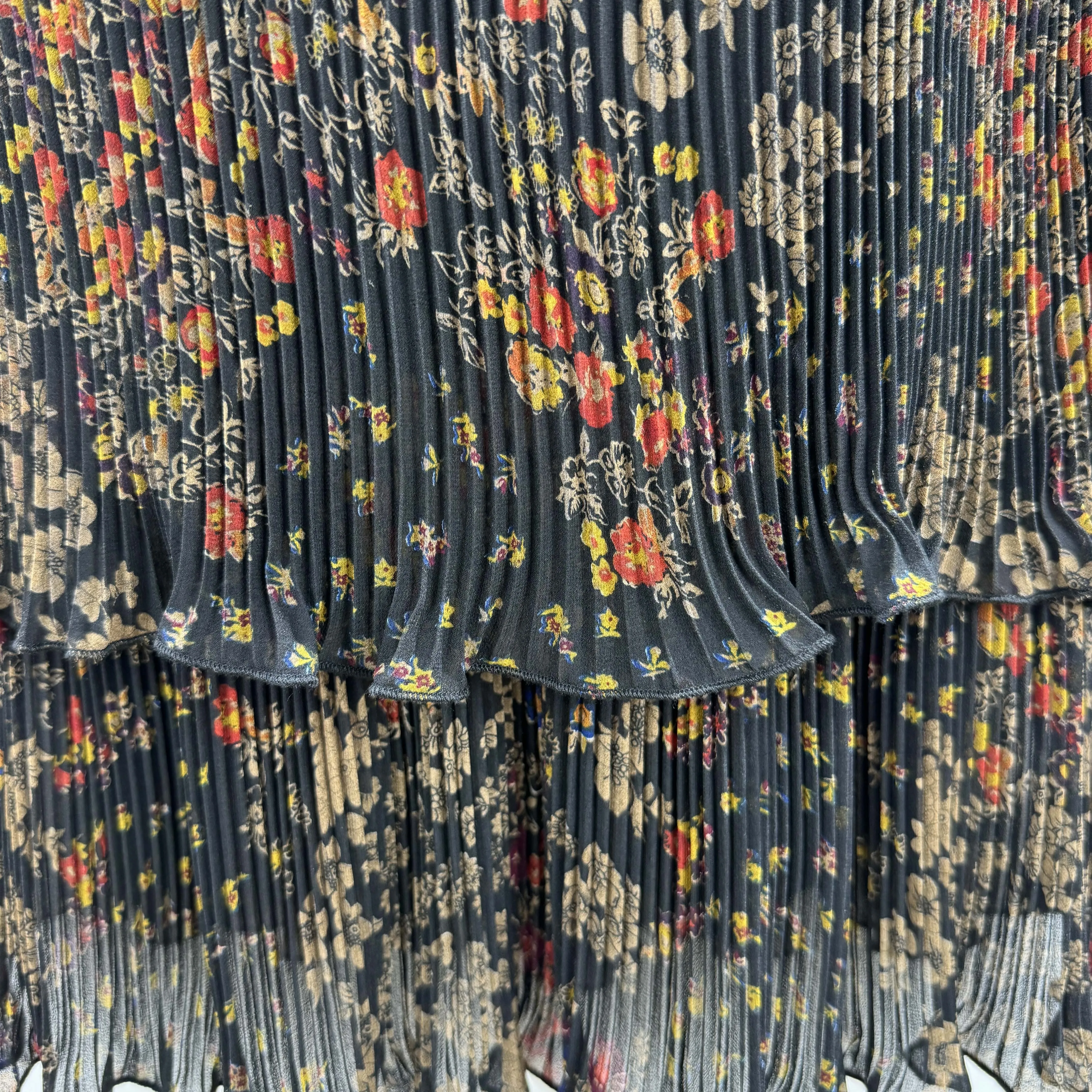 ZYHT 21938 Black Velvet Mini Dress Square Neck Long Puff Sleeves with Pearl Trim & Crystal Dess Flared Scalloped Hem Dresses