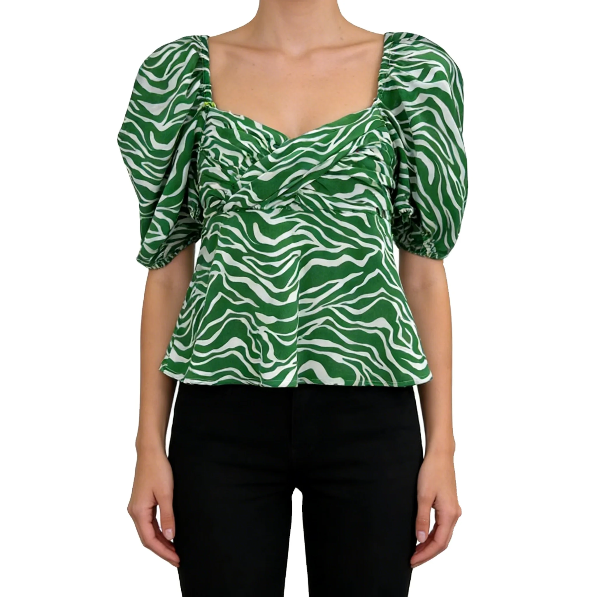 ZYHT 82024 White Blouse with Ruffled Cap Sleeves V-Neck Blouses Et Chemises Pour Femmes White Blouses for Women