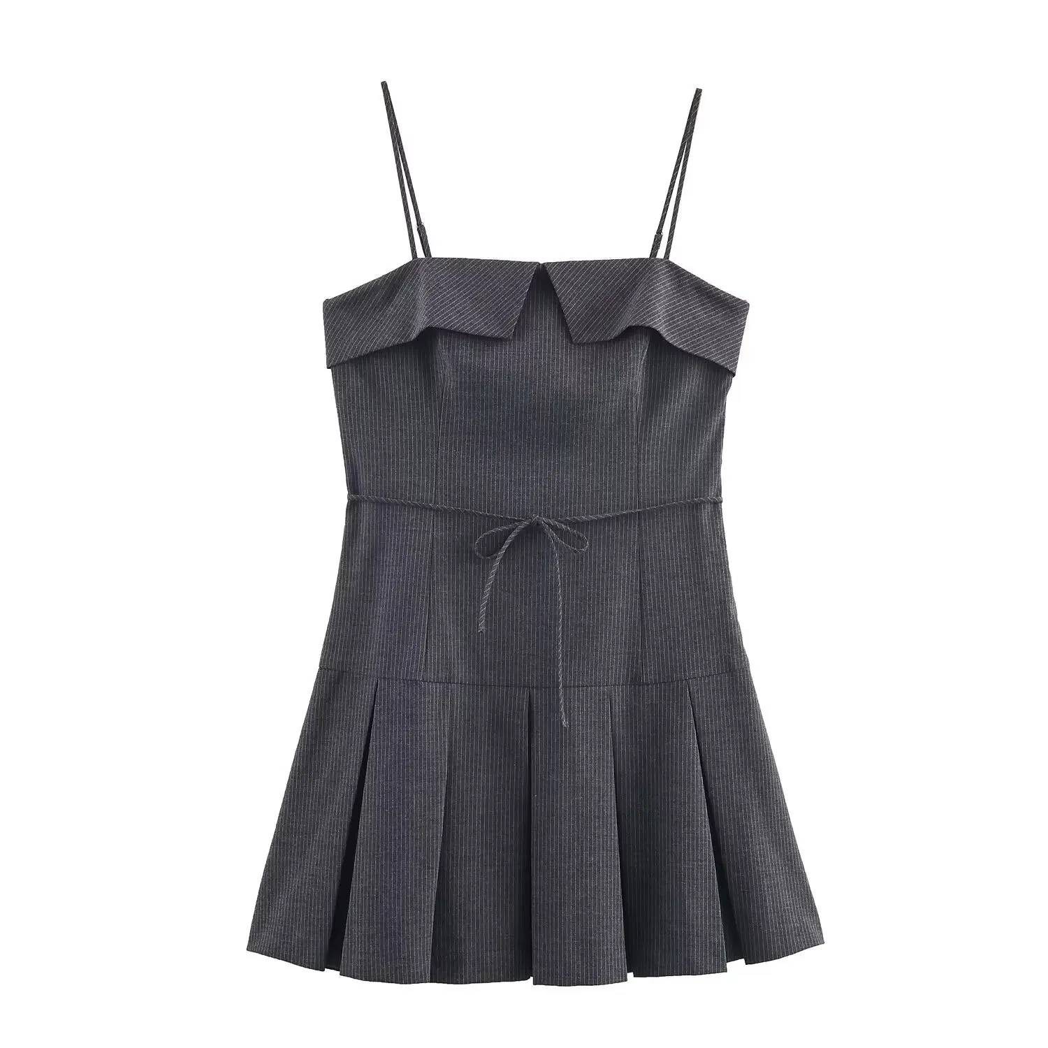 Women's Casual Summer Strip Gray Dress Simple New Fashion Ladies Sleeveless A-Line Dress