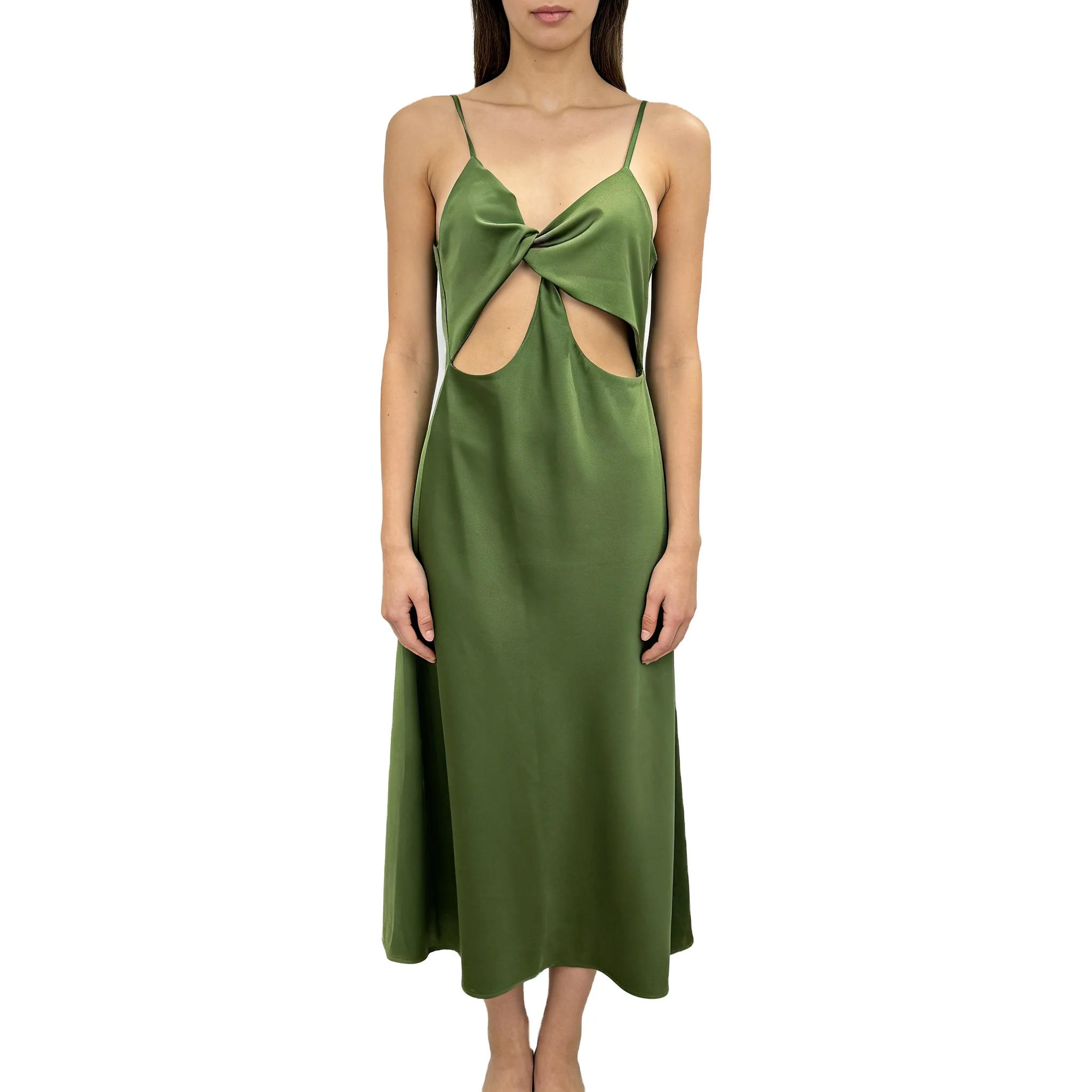 Women's Clothes Simple Sexy High Quality Casual Green Woman Sleeveless Midi Dress for Vacation