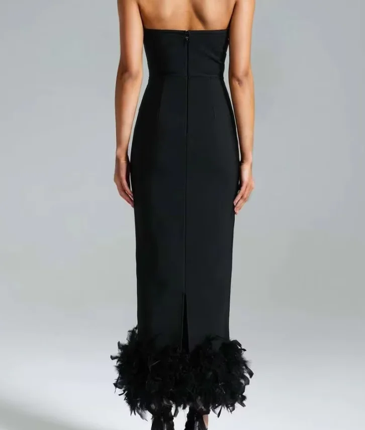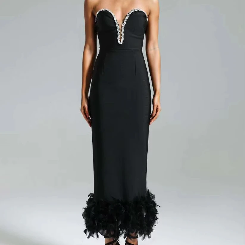 High Quality Women's Beaded and Fur Maxi Dress Elegant Prom Dress for Women