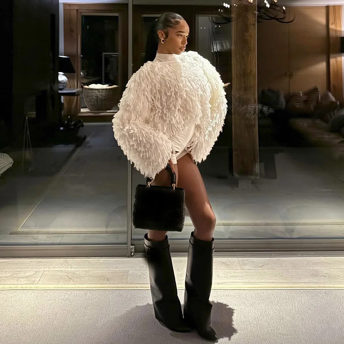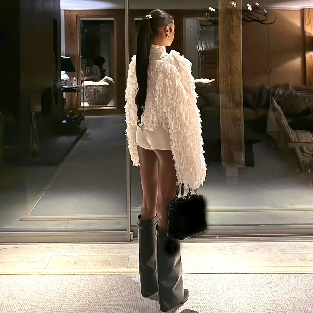 C0122 Winter New Fashion and Elegant Solid Tassel Jacket Tight Jumpsuit Knitting Set