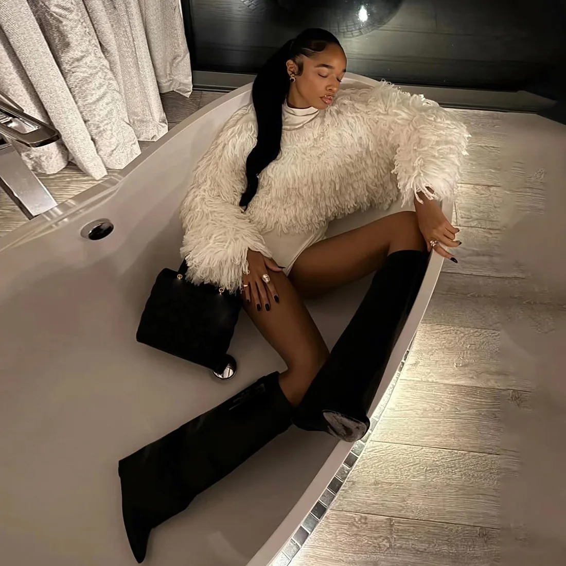 ZYHT 21541 Wholesale Crew Neck High Waist Casual Dresses Elegant Lace Velvet Mermaid Hem Ruched Long Sleeve Dresses for Women