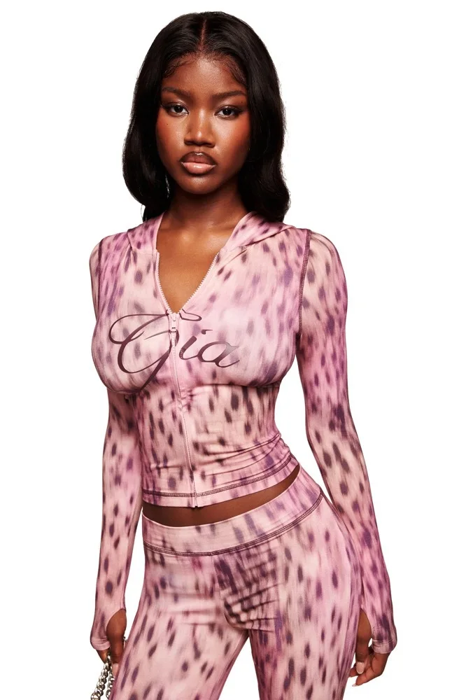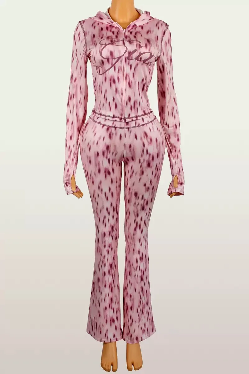 C0403 Fashion Printed Street Casual Leopard Print Zipper Long Sleeved Jacket Long Pants Set