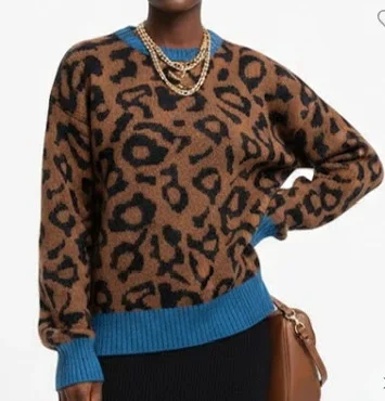 C1082 Wholesale Women's Leopard Pattern Popular Knitted Round Neck Sweater