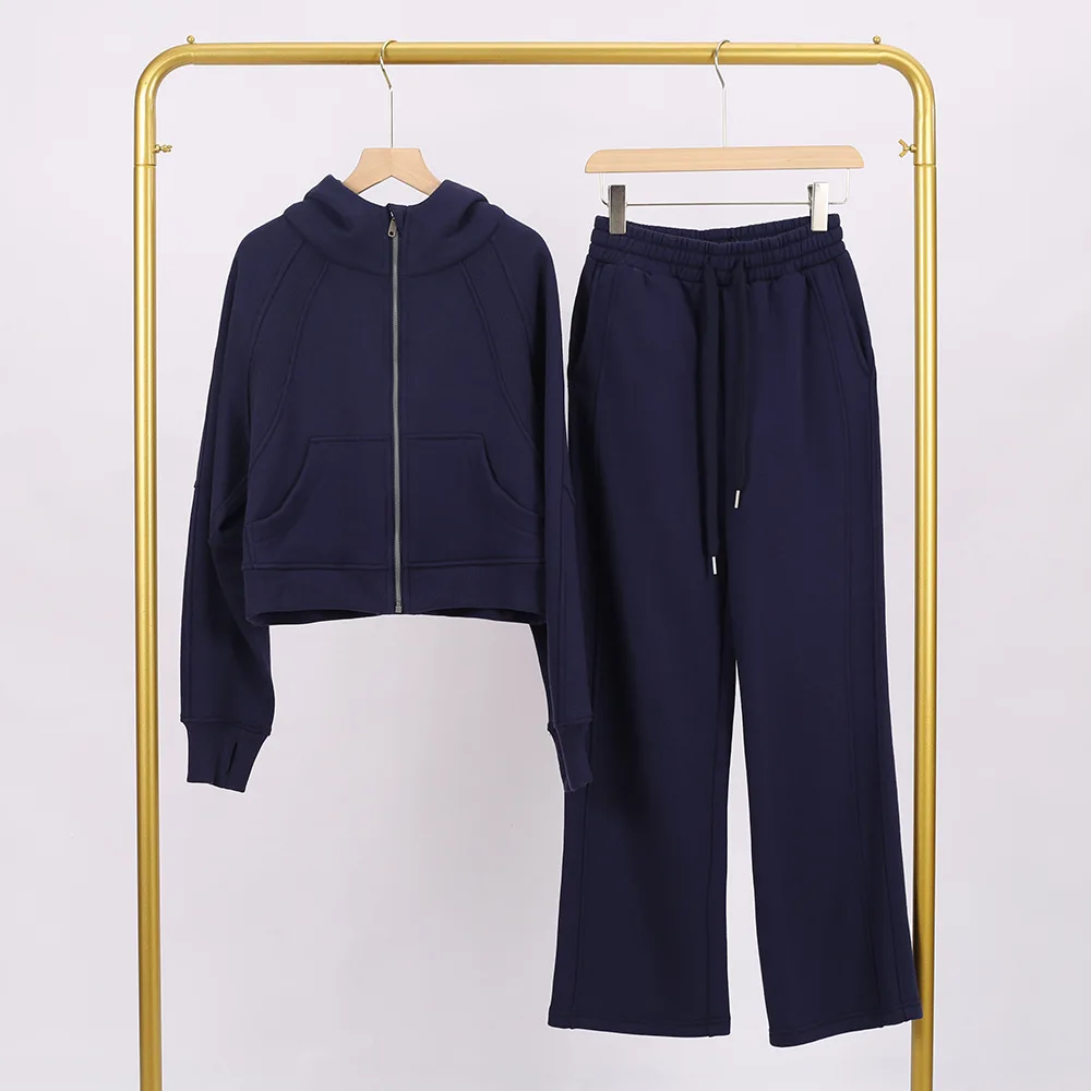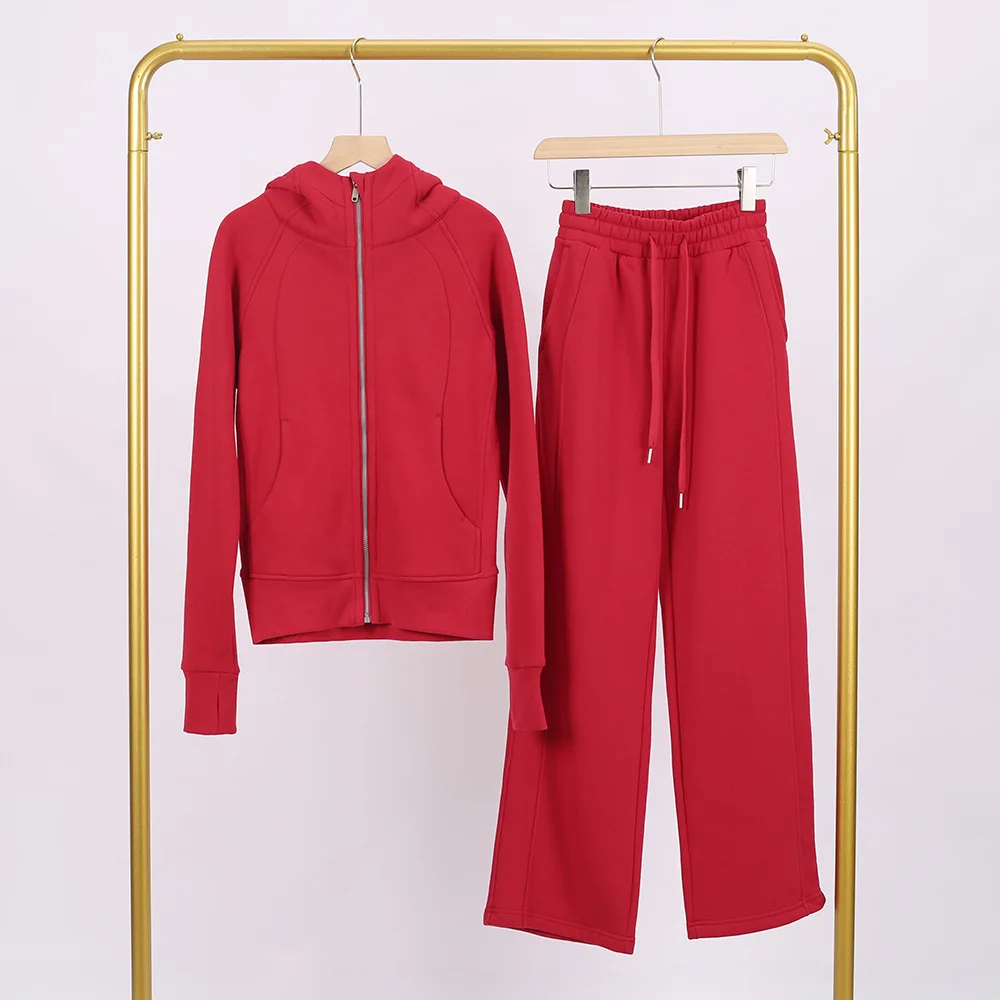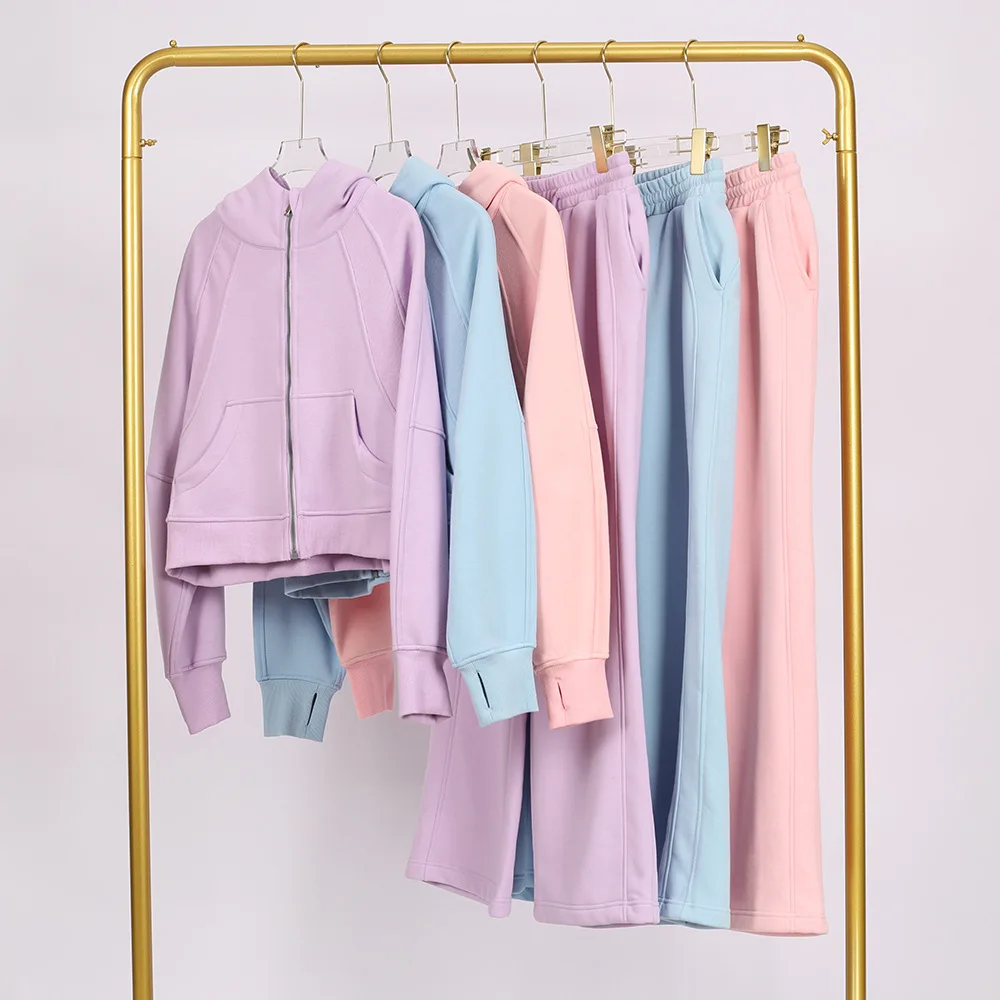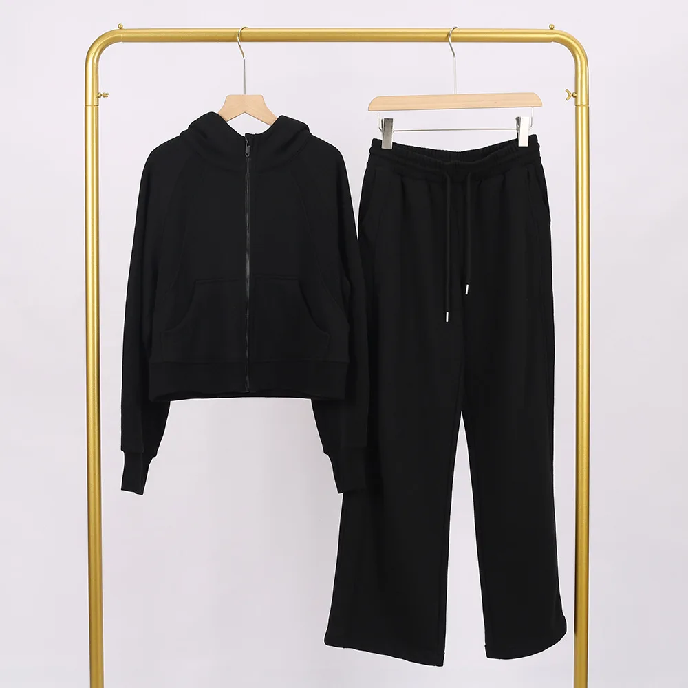 C0980 Full Zip Loose Hooded Designer High Waisted Drawstring Sweatpants Oggers Women's Sports 2 Piece Set
