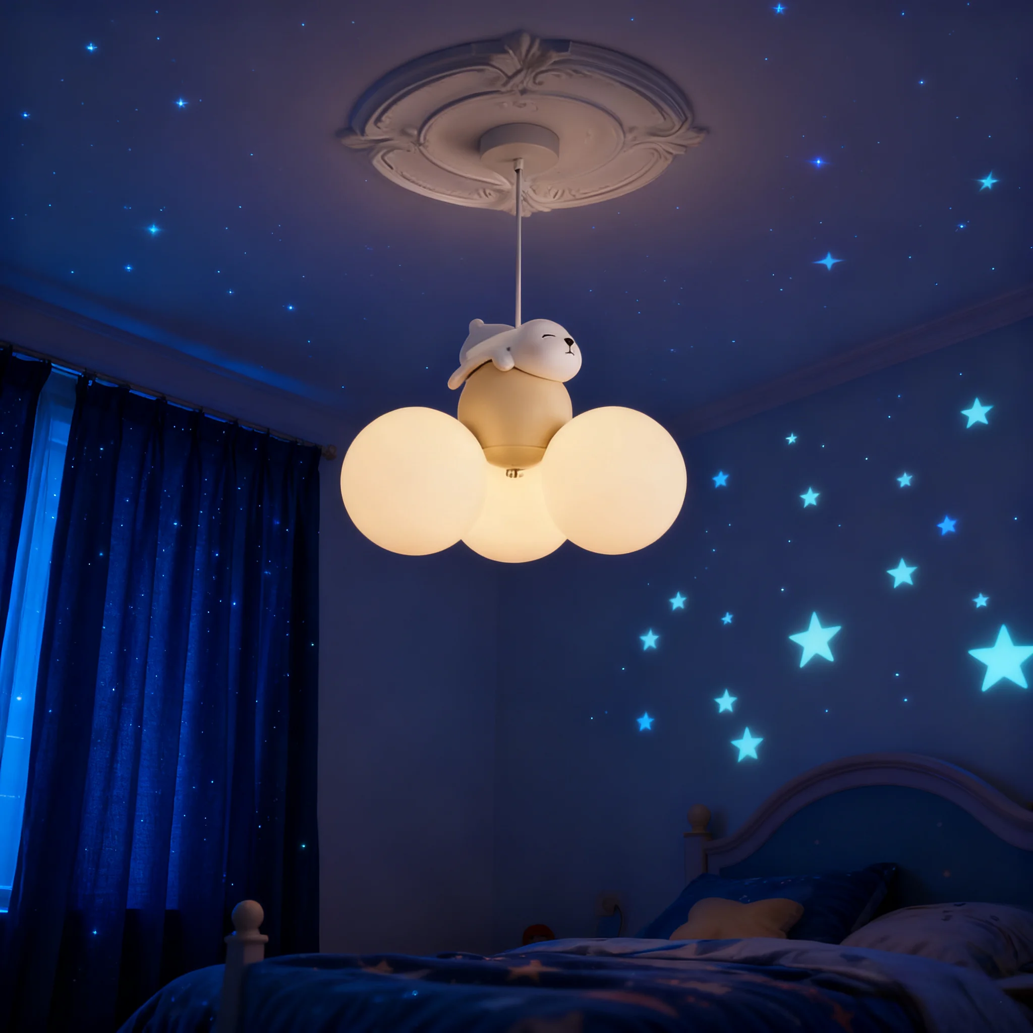 JACKSUN Cream Style Living Room Chandelier Iron Hanging Adjustable Height Panda Dining Table Bar Pendant Lamp Lighting Modern