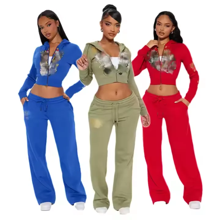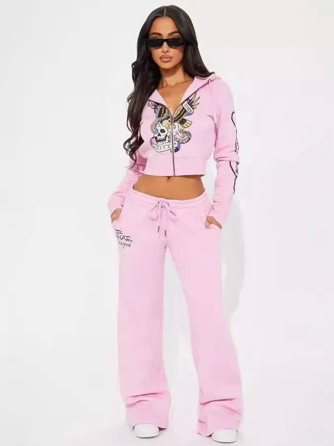 C0057 Spring Sexy Long Sleeve Jacket Print Women's Two Piece Jogging Women Set