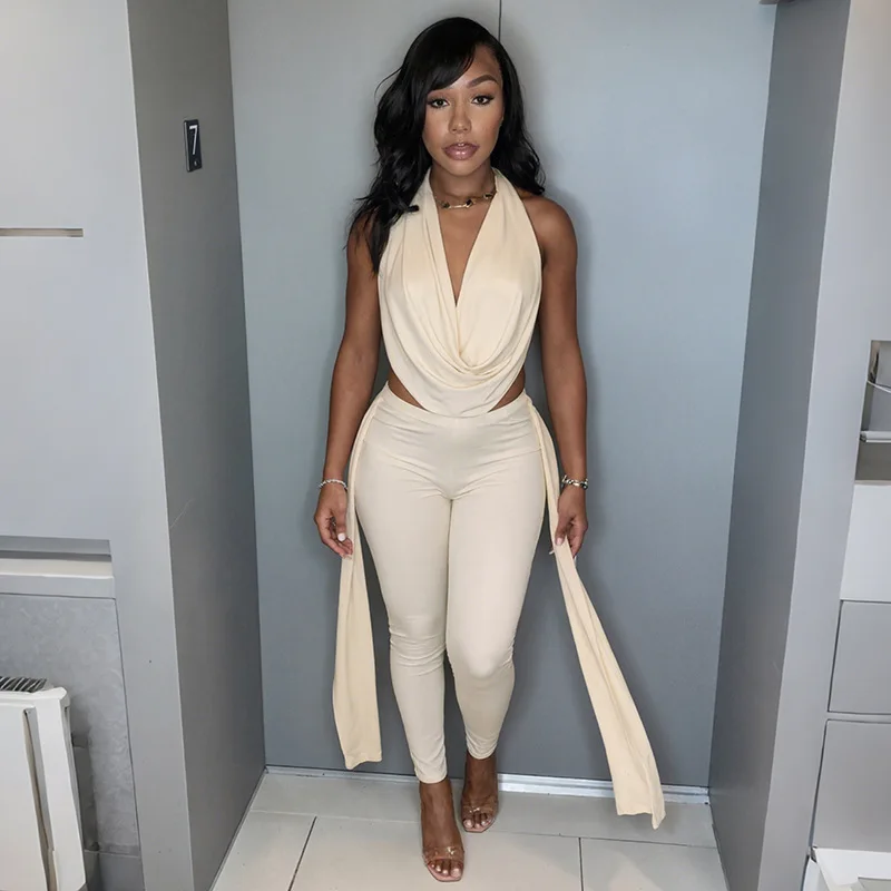 2025 Wholesale Clothing Woman Two Piece Backless Sleeveless Tank Top Women's Sets