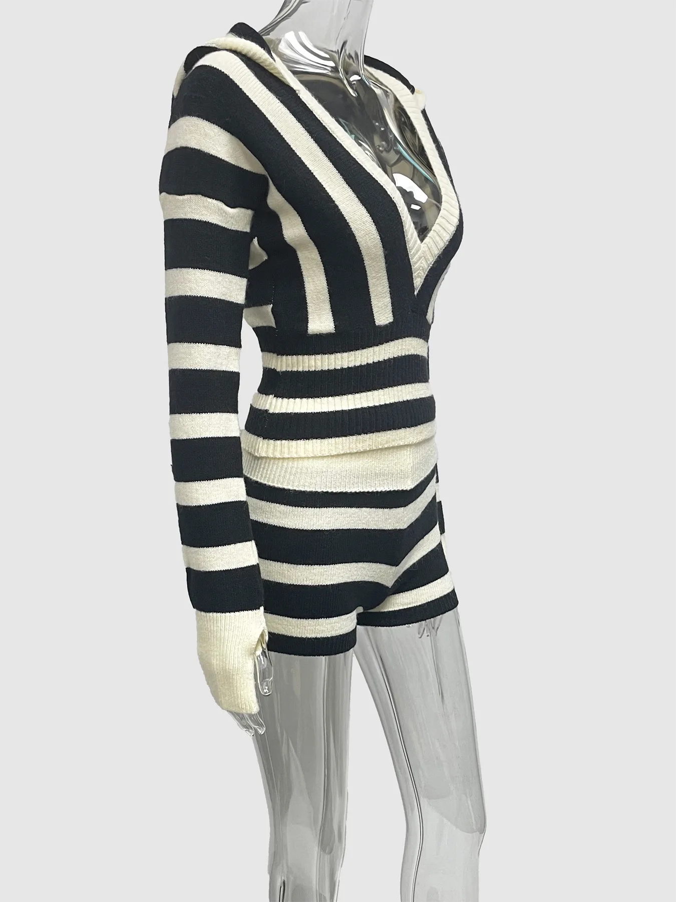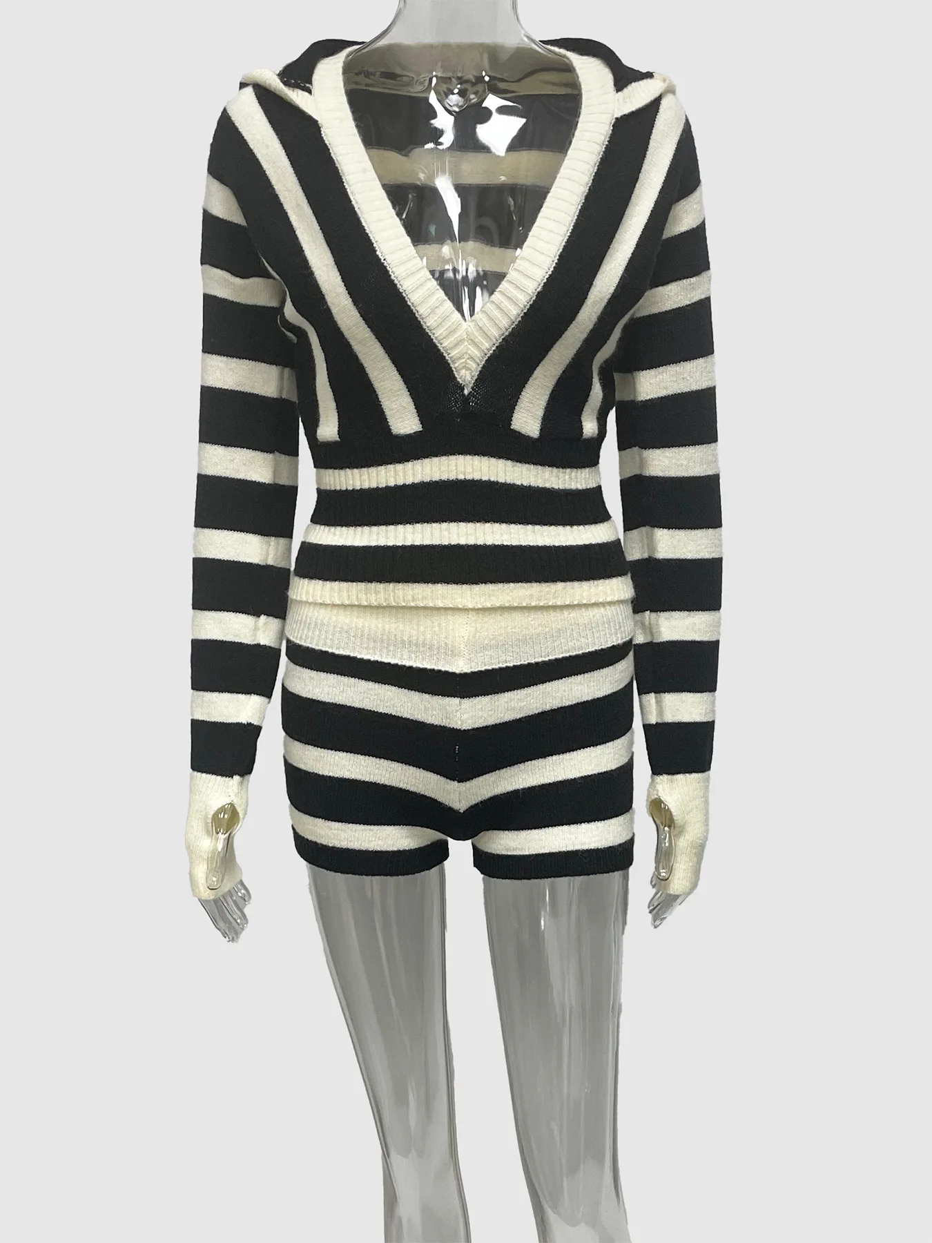 Wholesale New Arrivals Popular 2025 Women Clothing Knitted Hoodie 2 Piece Shorts Set
