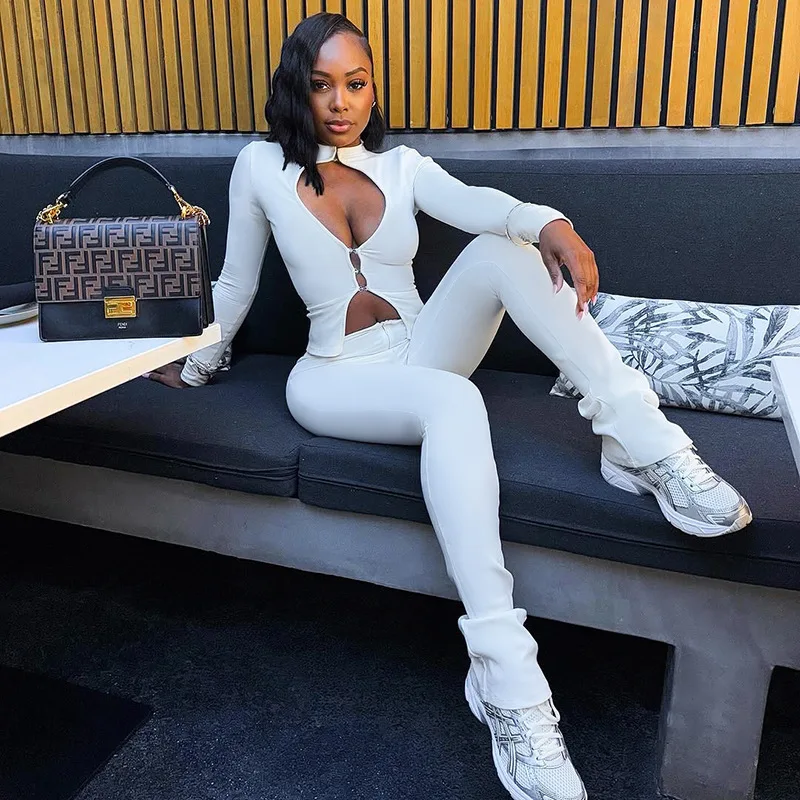 2025 Wholesale Clothing Woman Two Piece Jogging Wear Hollow Out Tracksuit Women's Sets